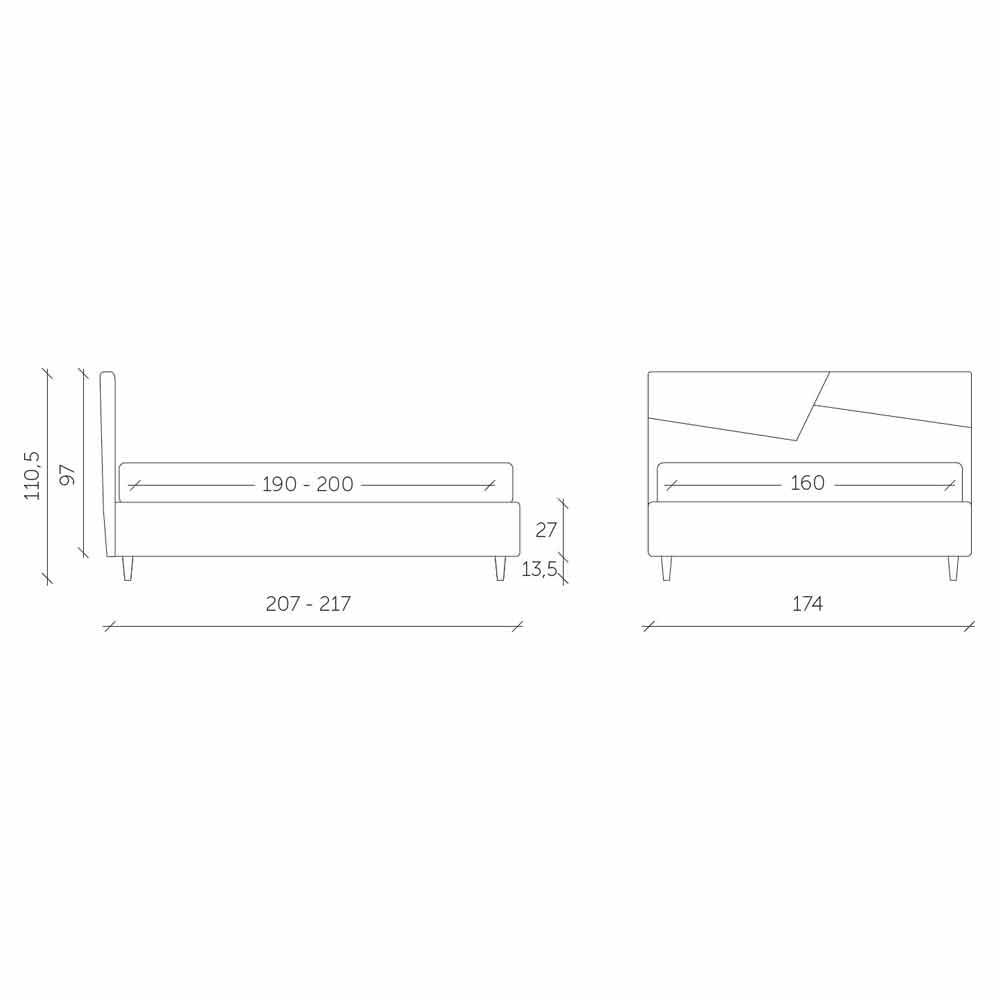 tapițerie din piele ecologică Madryt col. 982, 926 și 990. Tablia patului este caracterizata de trei panouri geometrice si captusite care ii evidentiaza aspectul estetic;