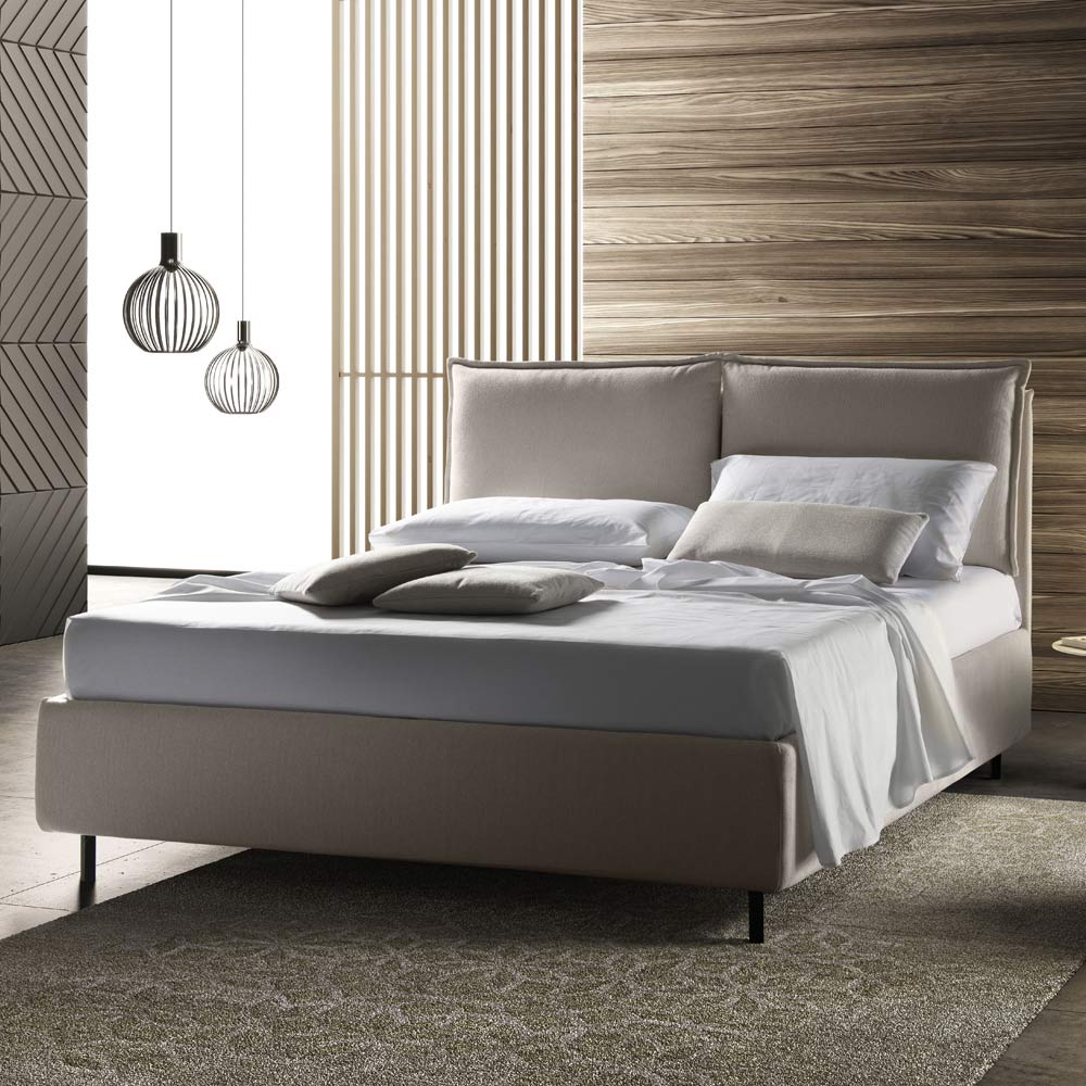 Pat dublu cu husă detașabilă din material textil sau catifea cu container Made in Italy.