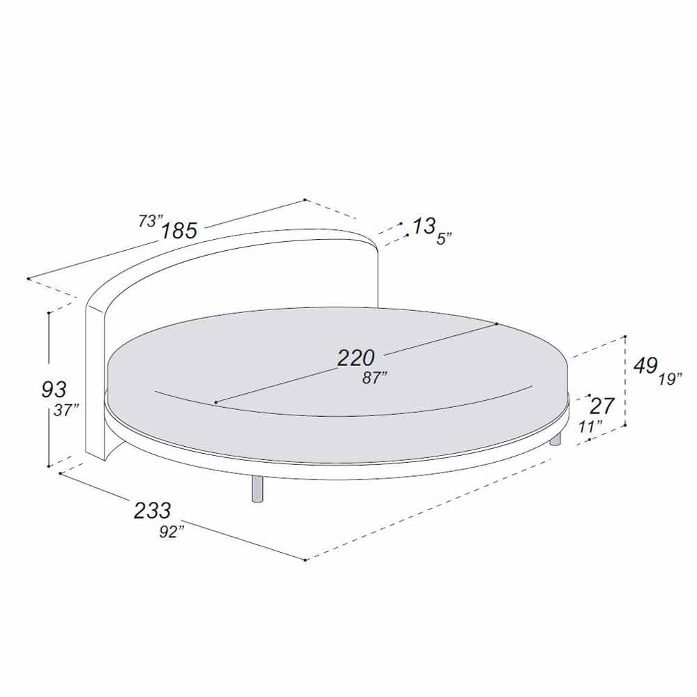 Pat rotund dublu îmbrăcat în material textil cu tăblie rotunjită Made in Italy.