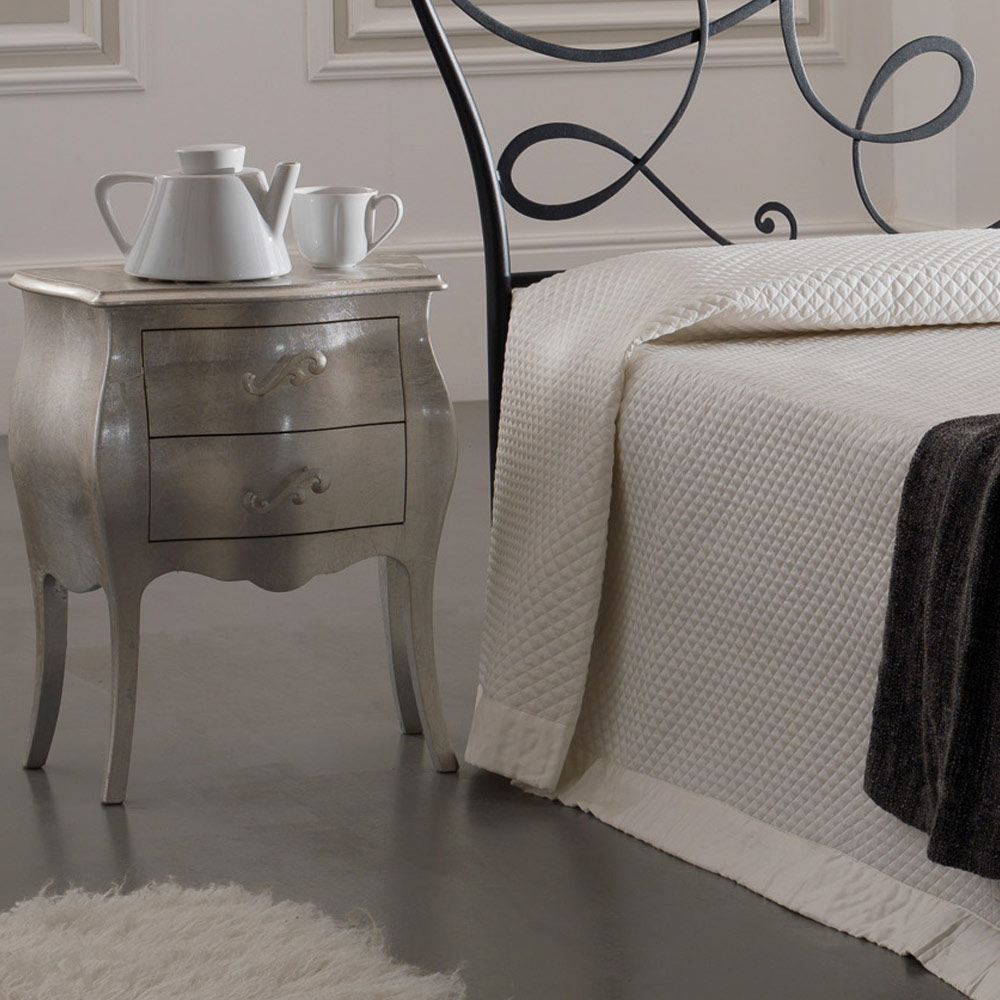 Pat dublu cu tăblie din fier și 2 noptiere Made in Italy