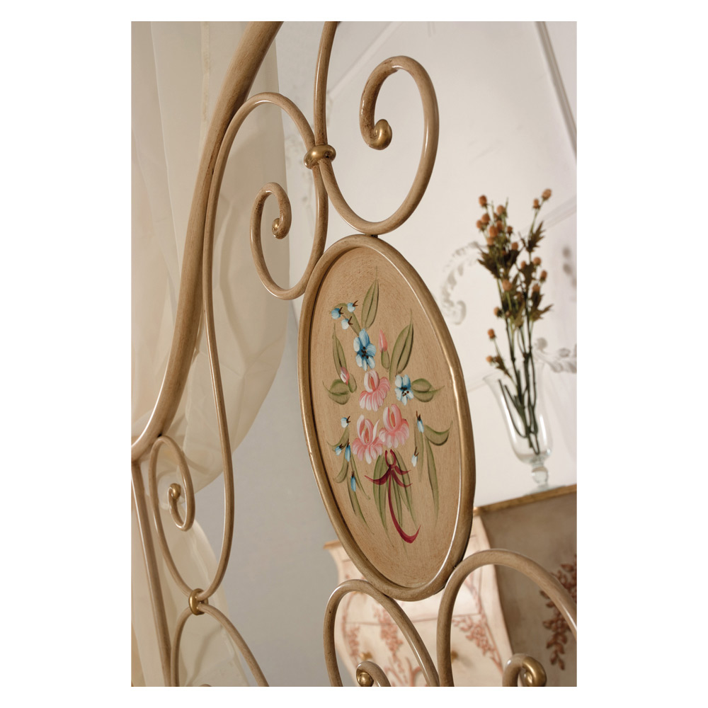 finisaj vopsit cu pulbere fildeș antic. Acest pat este o alegere de caracter cu o aromă clar clasică, care conține moliciune și rafinament de neegalat. Detaliul floral de pe tăblie este realizat manual cu mare grijă și atenție pentru a oferi produsului acea atingere unică și irepetabilă.
