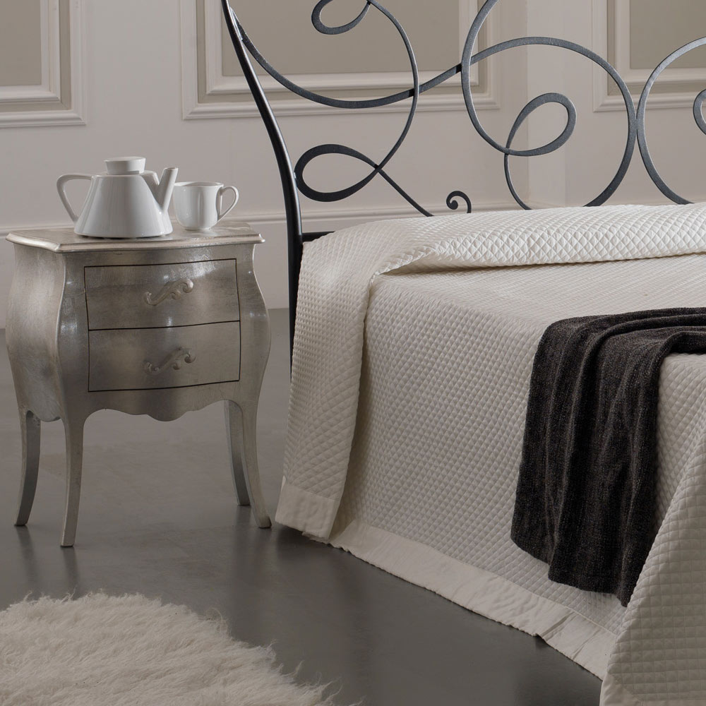 Pat dublu cu tăblie din fier și 2 noptiere Made in Italy