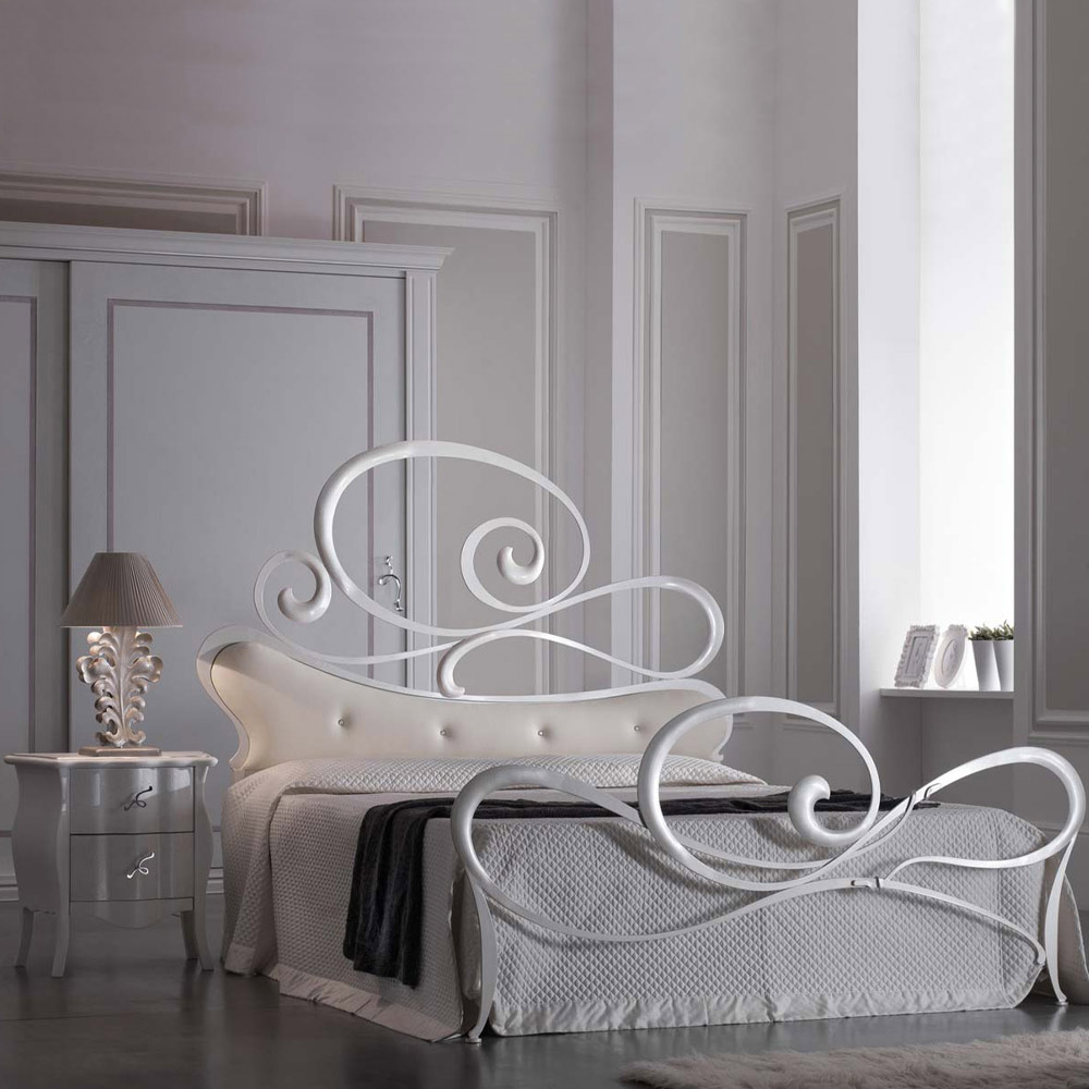 Pat dublu cu tăblie din fier și 2 noptiere Made in Italy