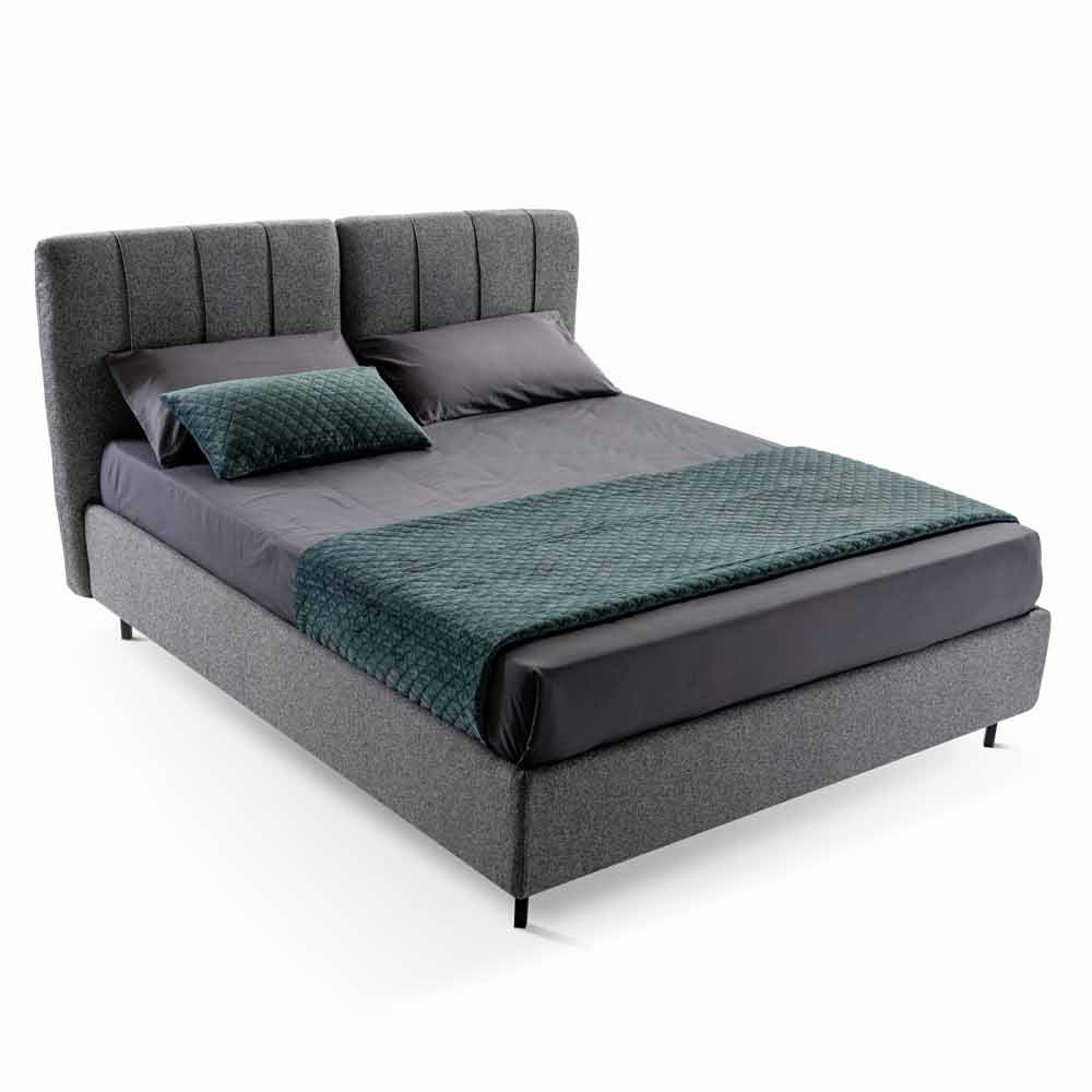 Pat dublu modern de lux cu cutie de depozitare din material textil și picioare metalice, realizat manual în Italia.