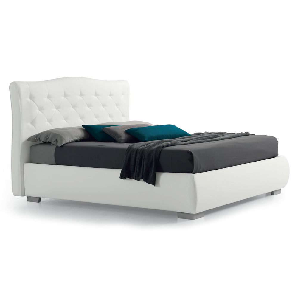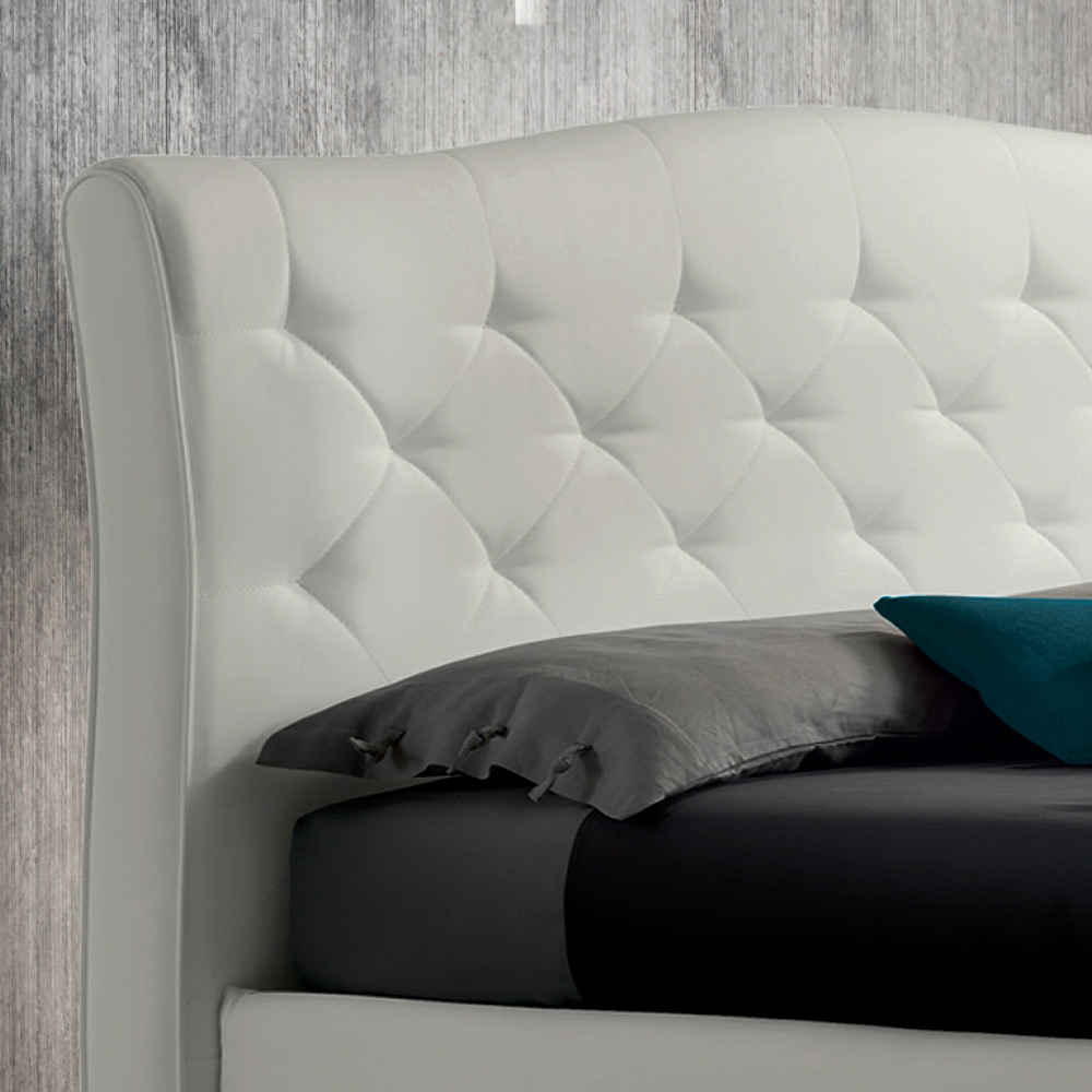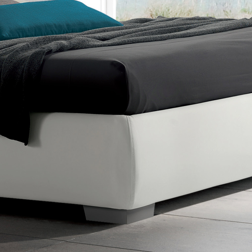 Pat dublu cu cutie de depozitare si tablie matlasata din piele ecologica, fabricat in Italia.