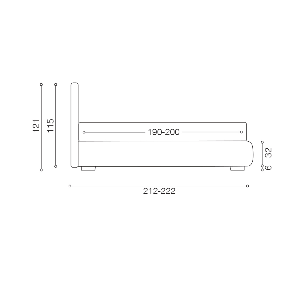- L201 x A221 x H129cm; dimensiune potrivită pentru o saltea de 180x200 cm