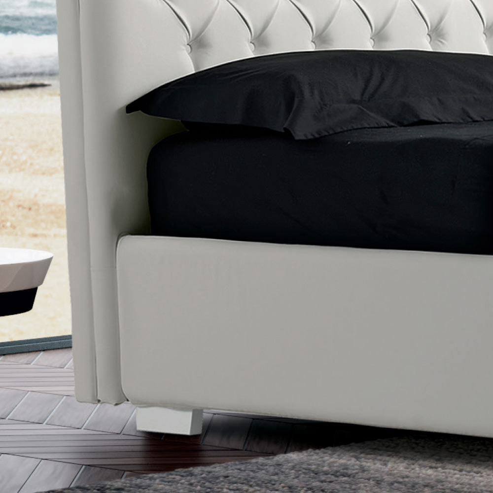 Realizat în întregime manual de maeștri tapițeri , Ozzano este un pat a cărui execuție capitonnè sporește geometria perfectă a designului în formă de romb al tăbliei patului, decorat cu nasturi. În interior, un cadru robust din placaj de plop cu căptușeală din poliuretan nedeformabil D30.