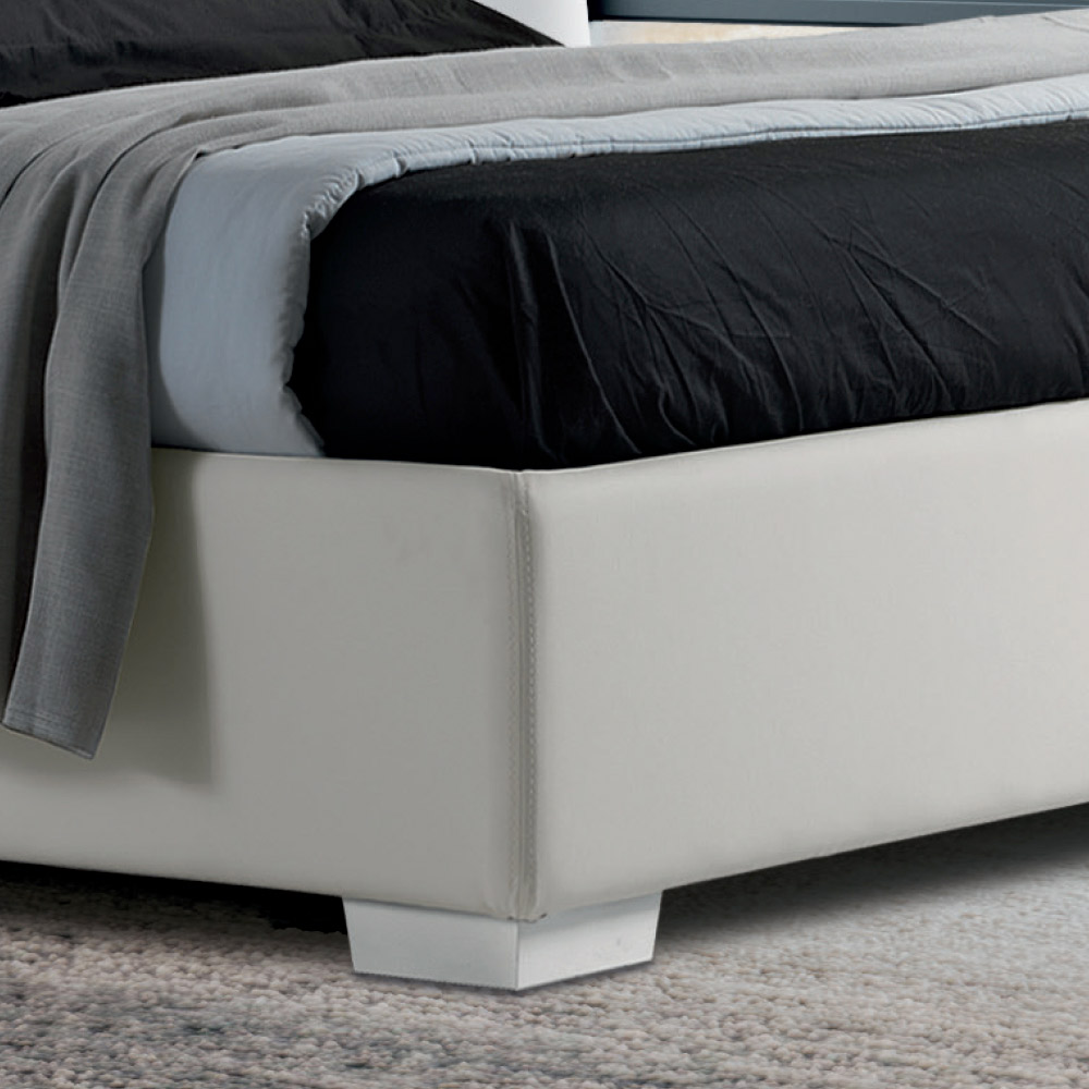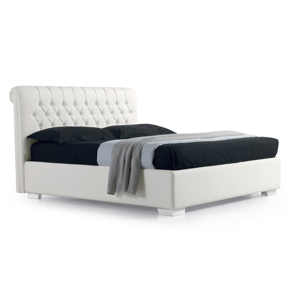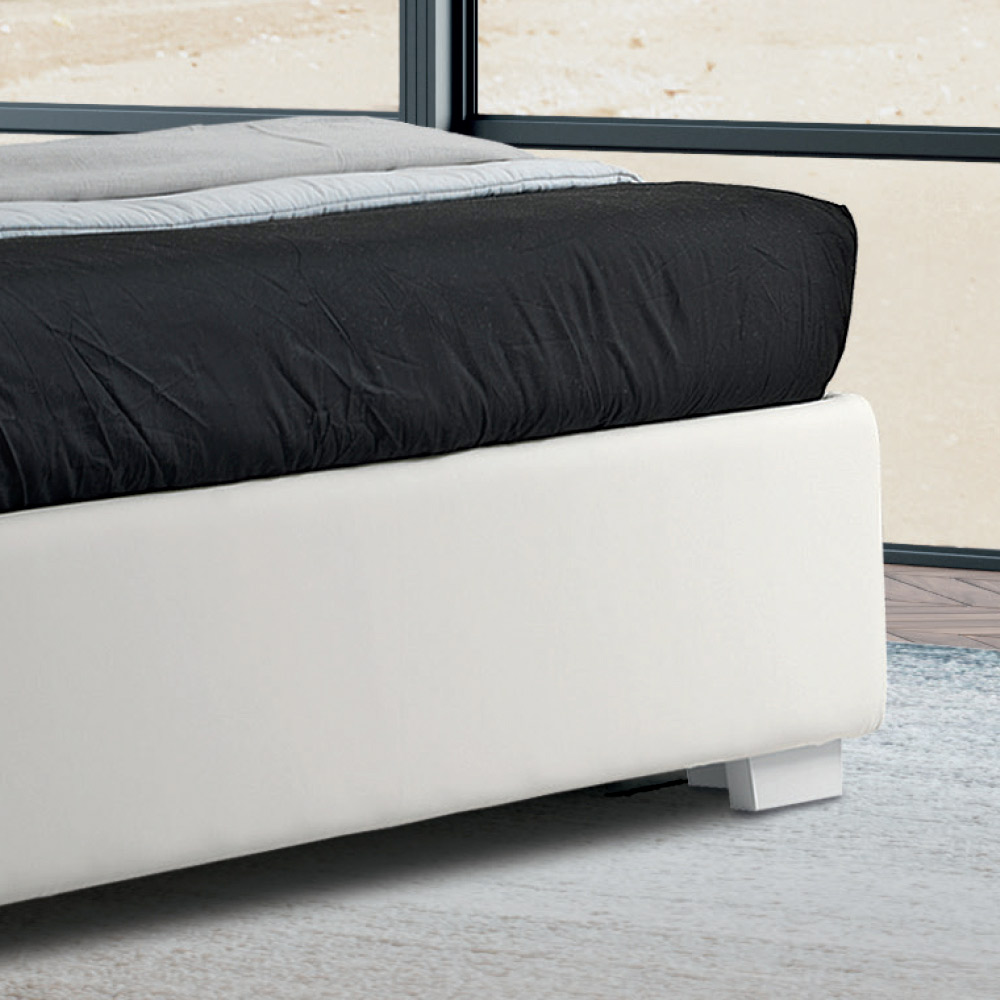 Pat dublu tapitat imbracat in piele ecologica, cu lada depozitare, fabricat in Italia.