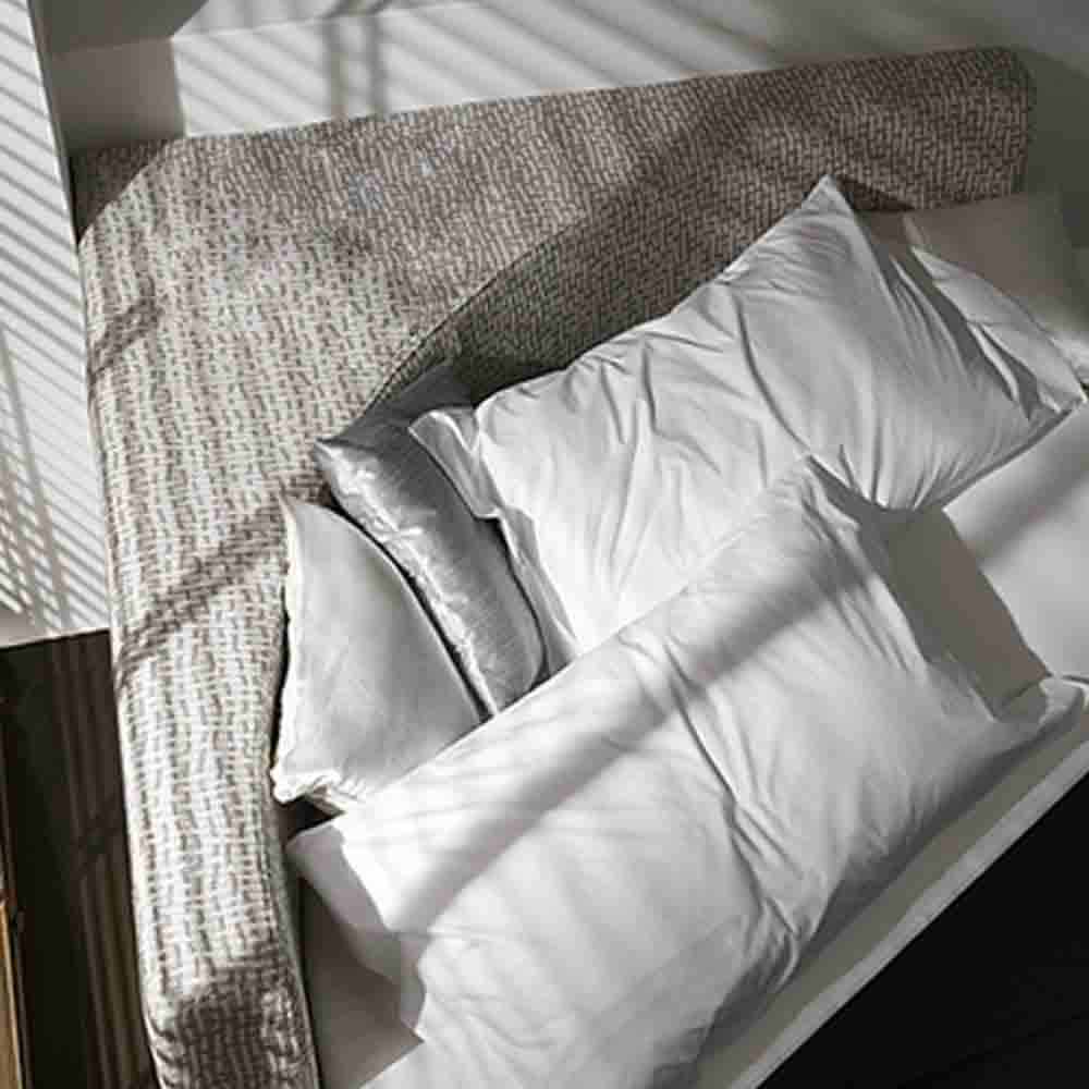 Pat rotund dublu îmbrăcat în material textil cu tăblie de colț, design Made in Italy.
