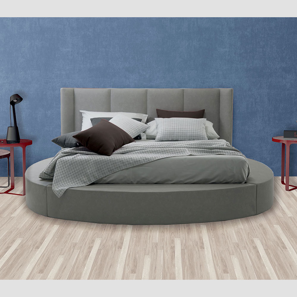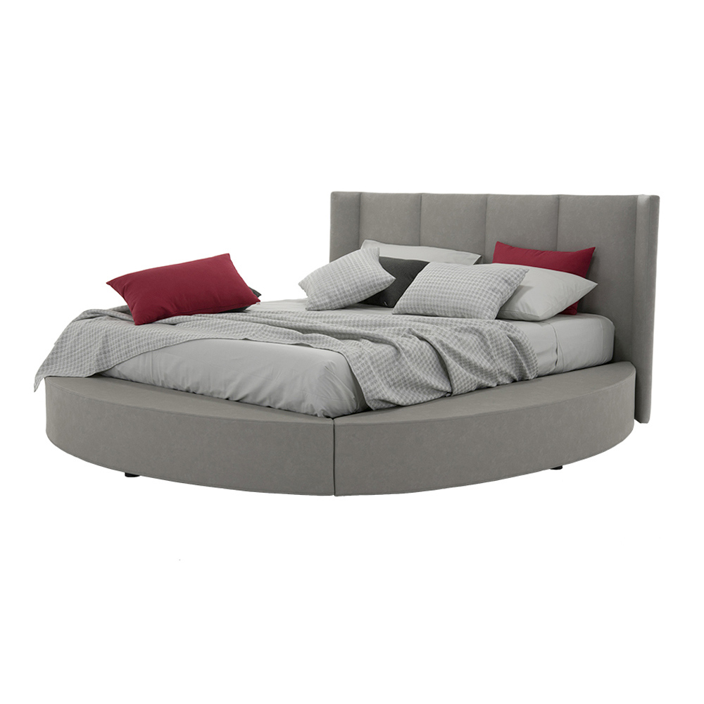 Pat dublu de înaltă calitate cu container și cadru de pat circular, din material sau piele ecologică, realizat manual în Italia.