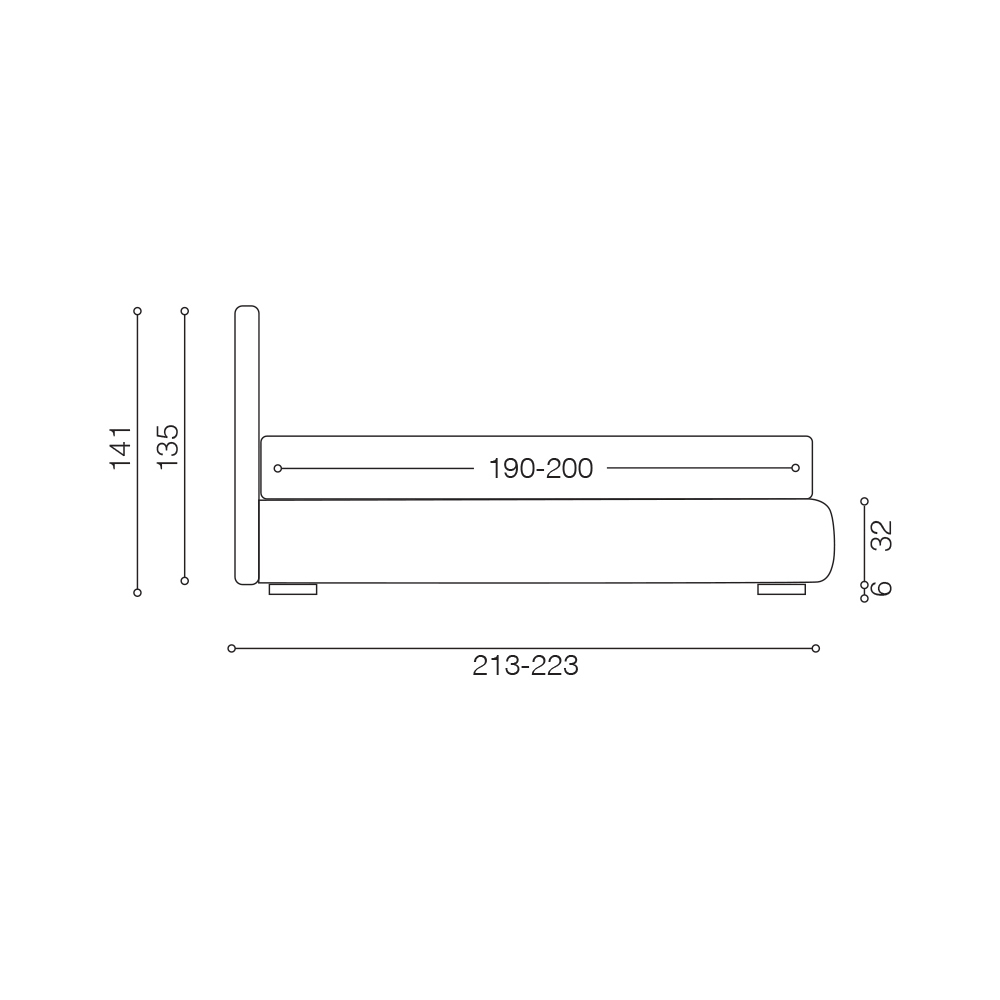 Cadrul patului, inaltime de 32 cm, are huse usor detasabile (tablie nedetasabila). Picioarele sunt din lemn si au o inaltime de 6 cm.