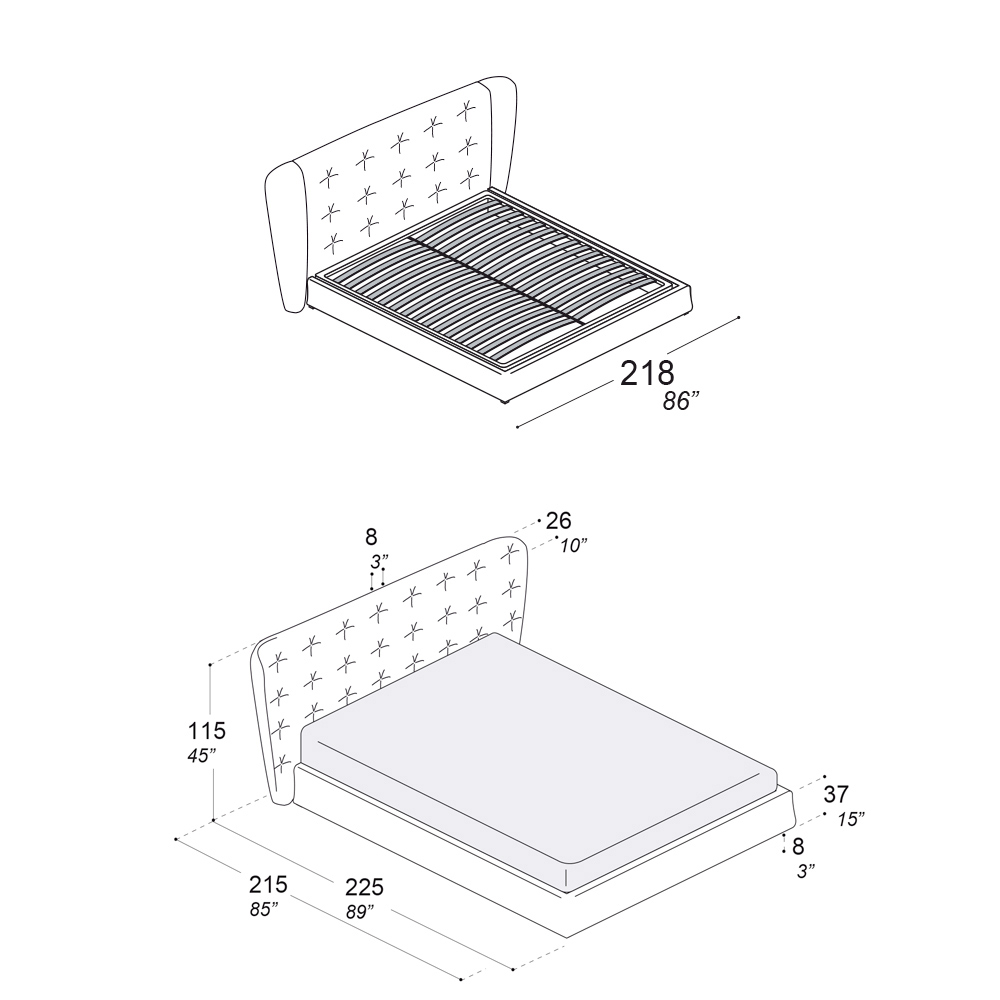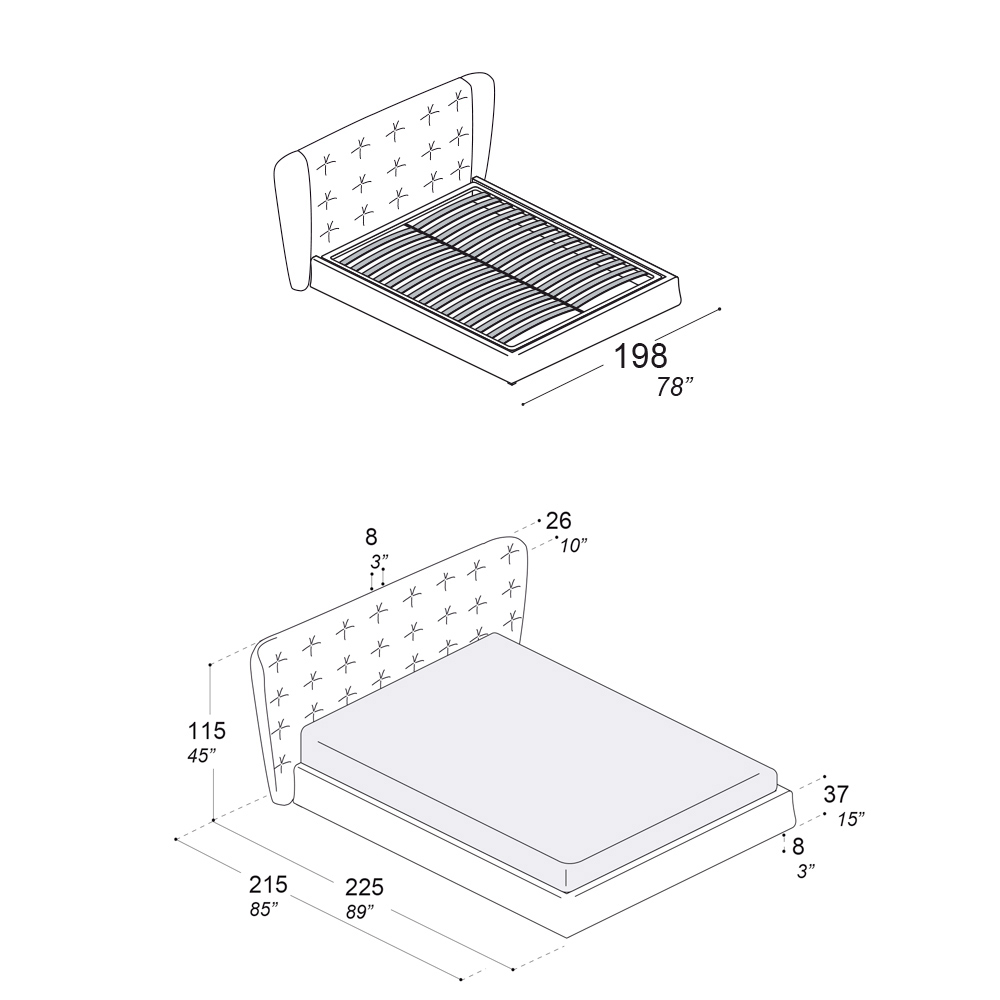 - lungime: 198 cm x adancime: 225 cm x inaltime: 115 cm - potrivita pentru o saltea de 140x200 cm