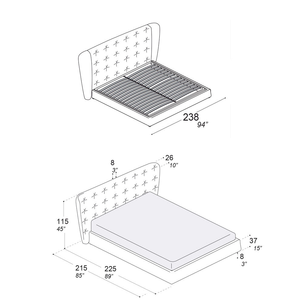 - lungime: 238 cm x adancime: 225 cm x inaltime: 115 cm - potrivita pentru o saltea de 180x200 cm