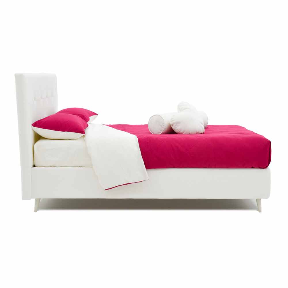 Pat dublu de design cu picioare din lemn alb și acoperire din imitație de piele Made in Italy.