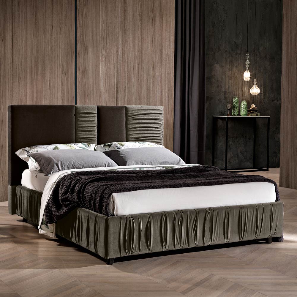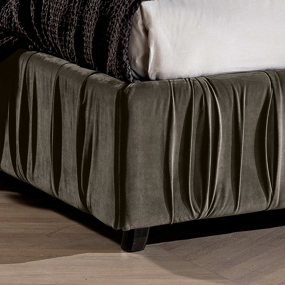 În versiunile vulcan și elefant, complementul de design modern arată frumusețea țesăturii cu pliuri care se aplică și pe cadrul patului.