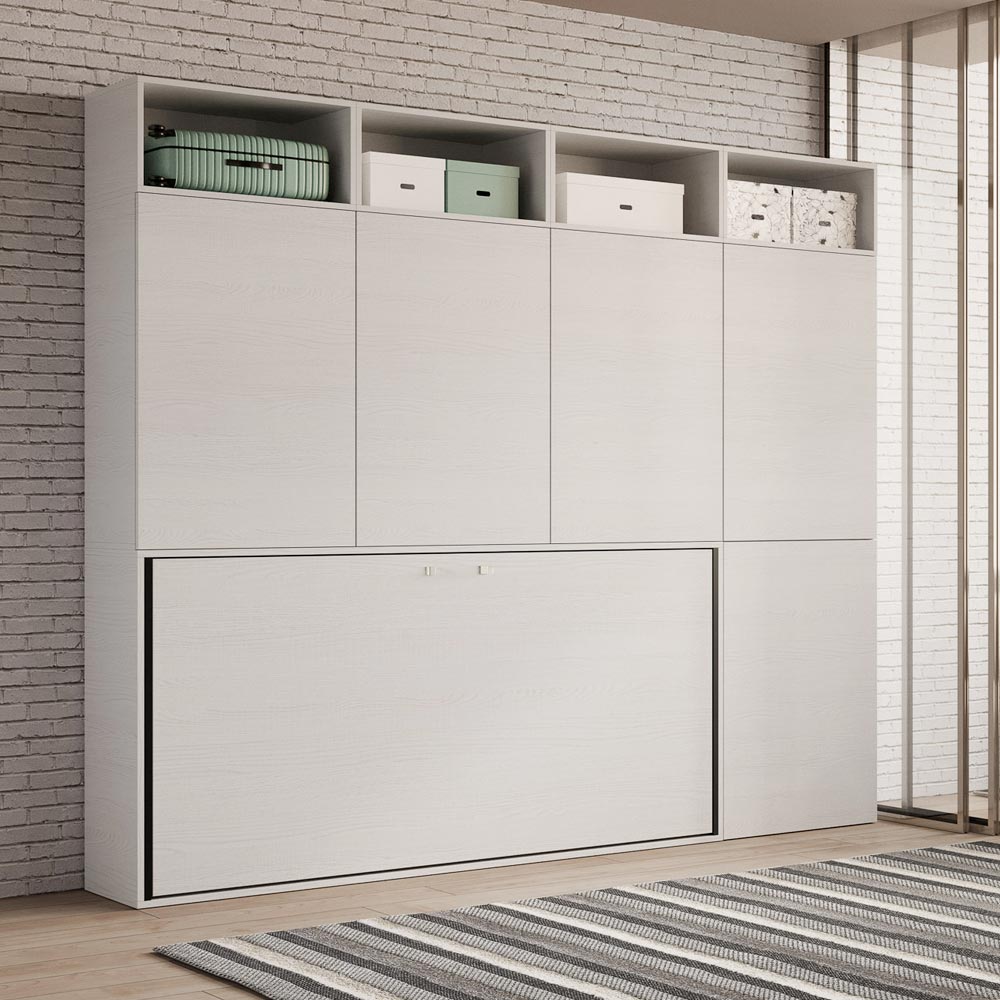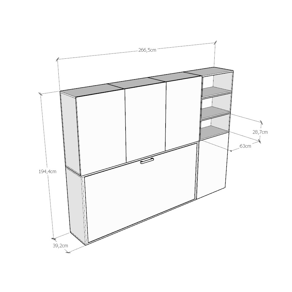 - COMPOZIȚIE A: un compartiment cu ușă și raft interior și patru compartimente deschise - Pat închis lipit de perete: 266,5 x 39,2 x înălțime 129,7 cm / Pat deschis: 266,5 x 106 x înălțime 129,7 cm