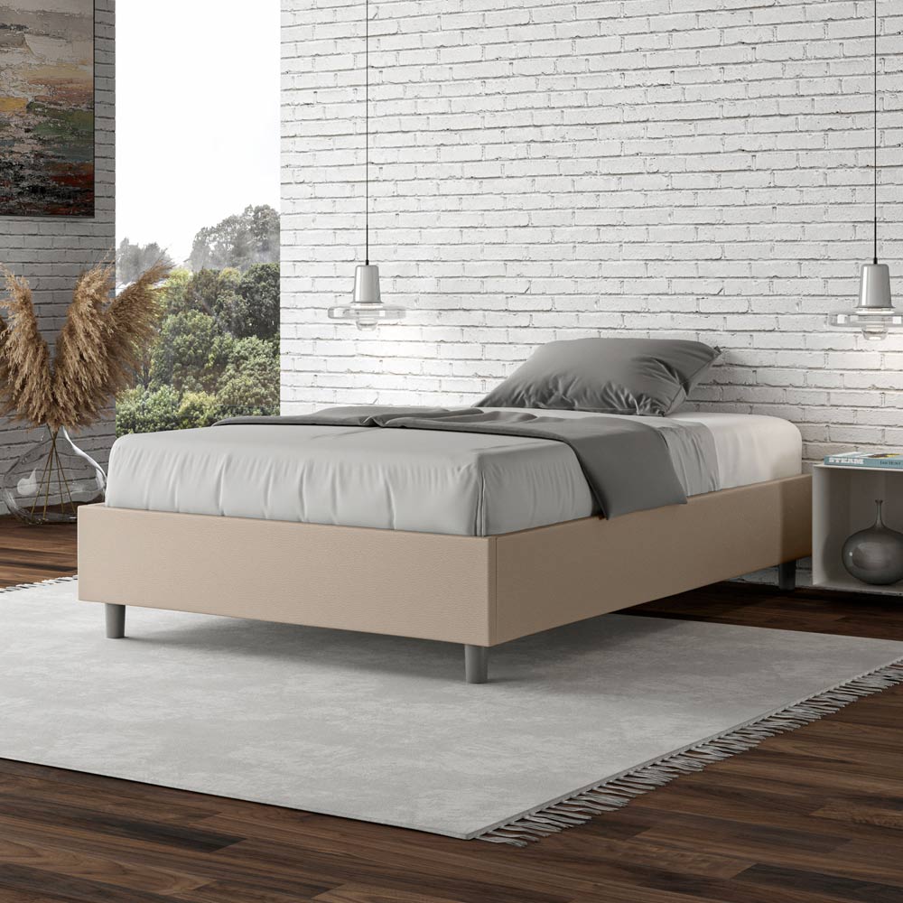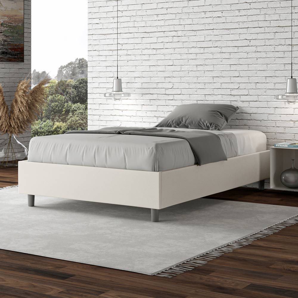 Pat queen-size căptușit, 120x200 cm, realizat din panouri din PAL și acoperit cu imitație de piele , fabricat în întregime în Italia. Acest pat queen-size se remarcă prin designul său curat și minimalist . Estetica sa discretă și versatilitatea îl fac ușor de integrat în orice decor. Una dintre caracteristicile sale definitorii este absența unei tăblii tradiționale , ceea ce îl face ideal pentru amplasarea în spații unice, cum ar fi sub o fereastră, într-o mansardă sau lângă un perete decorativ, fără a obstrucționa vederea sau a obține efectul dorit.