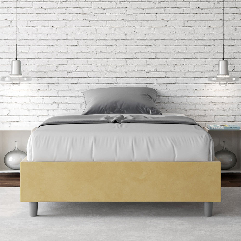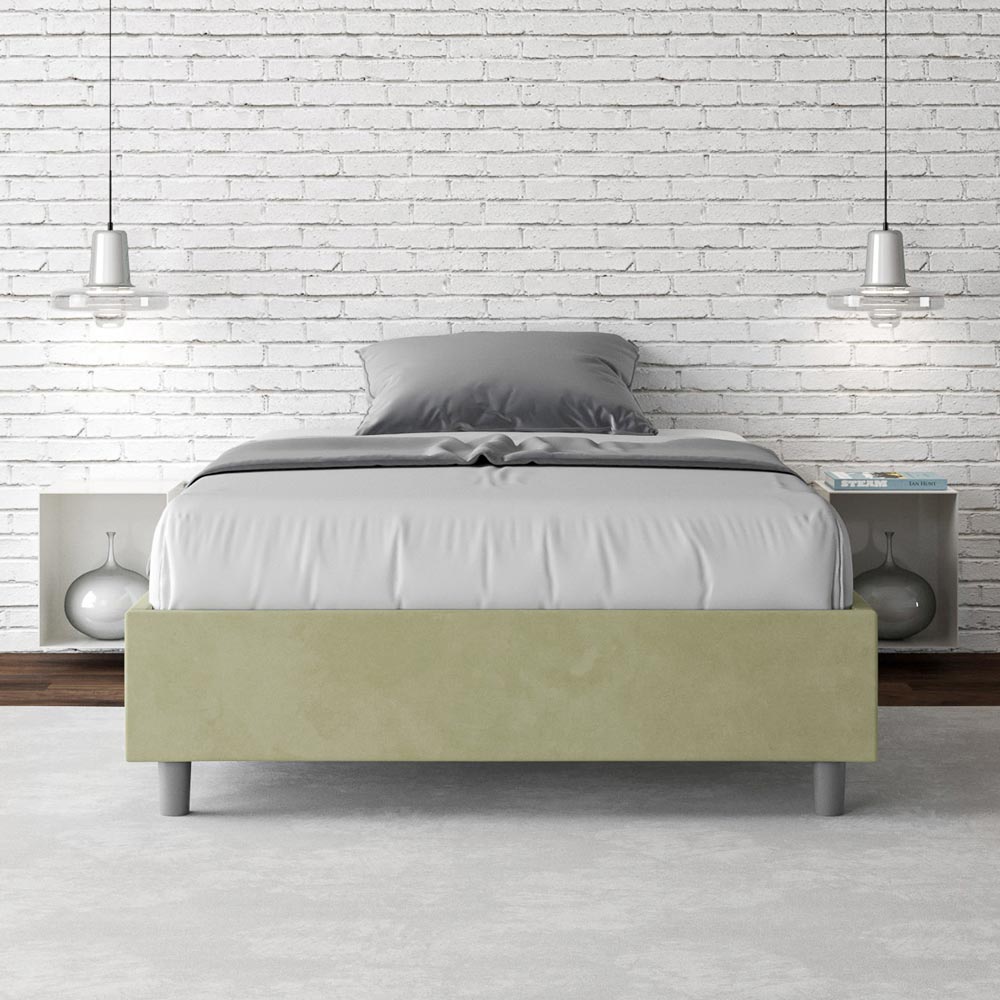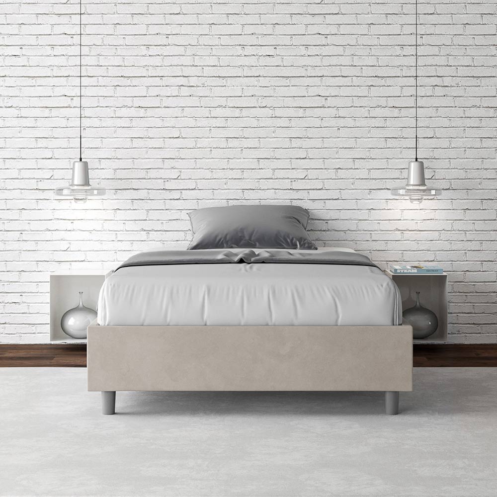Pat francez 140x200 cm căptușit cu panouri de melamină și acoperit cu microfibră , fabricat în întregime în Italia. Acest pat franțuzesc se remarcă prin designul său curat și minimalist . Estetica sa discretă și versatilitatea îl fac ușor de integrat în orice decor. Una dintre caracteristicile sale definitorii este absența unei tăblii tradiționale , ceea ce îl face ideal pentru amplasarea în spații unice, cum ar fi sub o fereastră, într-o mansardă sau lângă un perete decorativ, fără a obstrucționa vederea sau a obține efectul dorit.