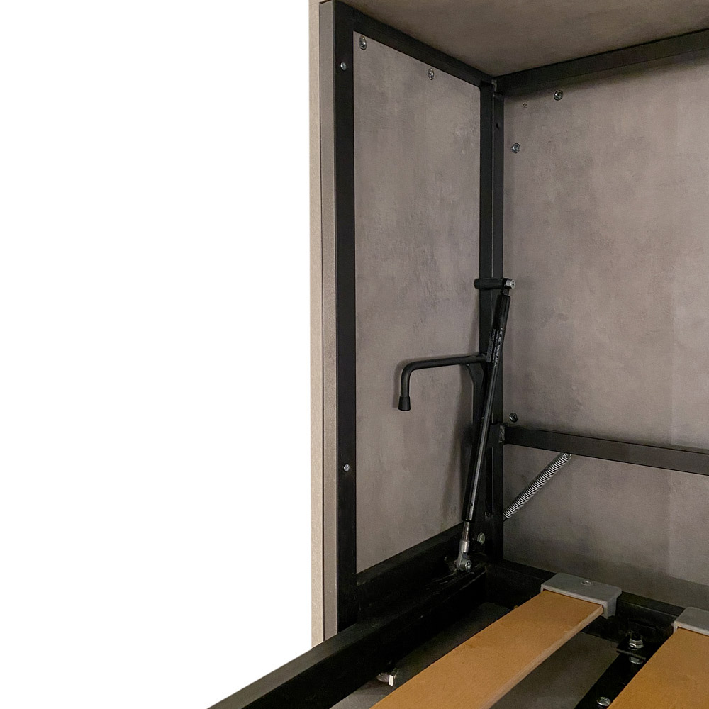 Patul Murphy ajunge demontat. Asamblarea este foarte dificilă și necesită două persoane cu experiență. Montarea pe perete este obligatorie. Pentru informații, contactați-ne folosind formularul „