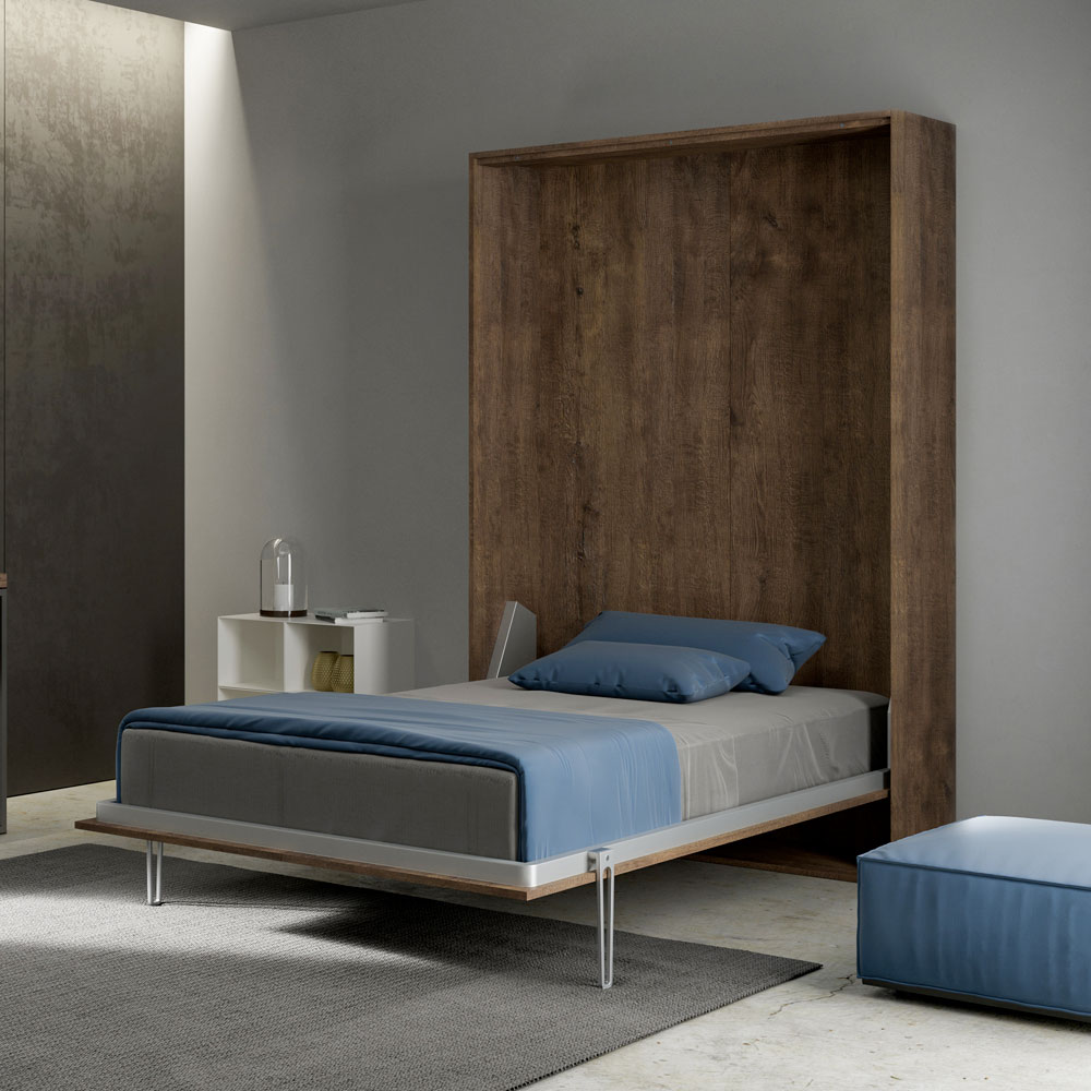 Cadrul patului este fabricat din PAL melaminat cu grosimea de 18 mm , asigurând rezistență și durabilitate în timp. Mecanismul de deschidere este lin și sigur, transformând peretele într-un pat confortabil cu un simplu gest.