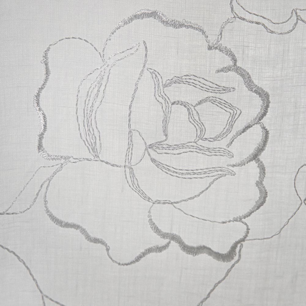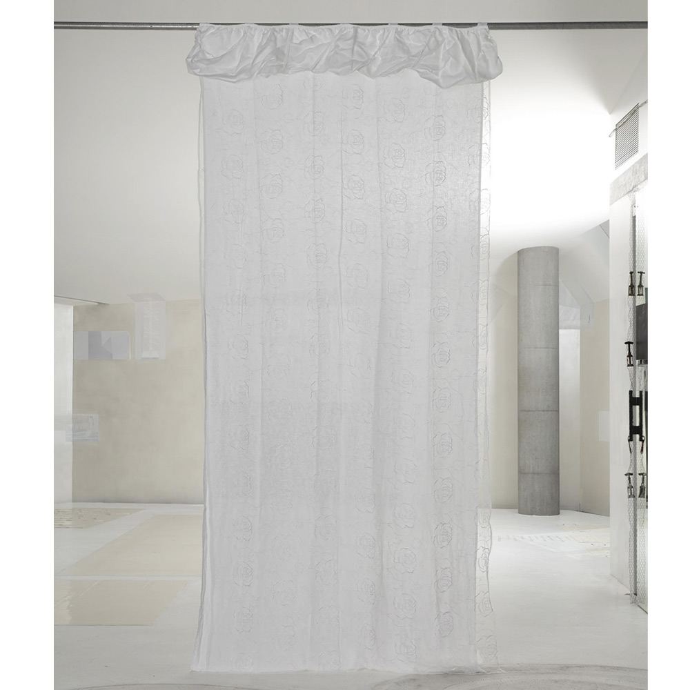 Perdă albă din tifon de in și organza cu trandafiri brodați, design elegant realizat în Italia.
