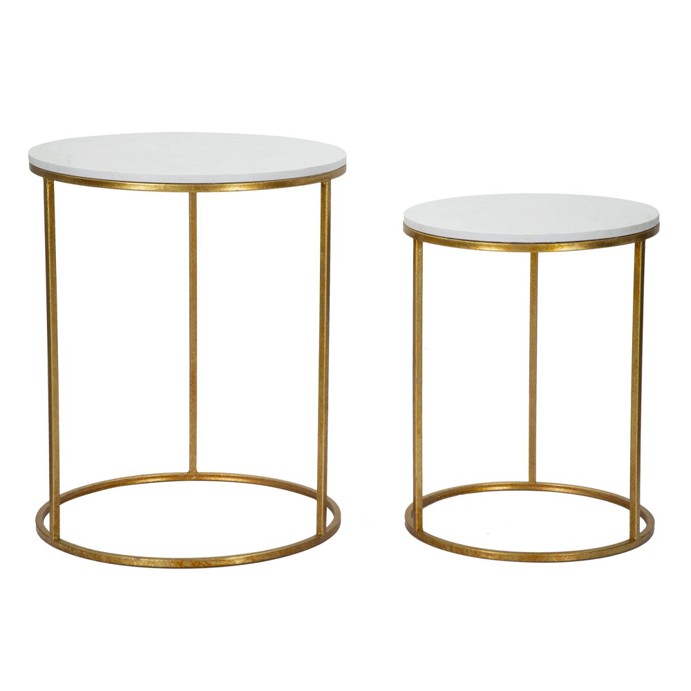Mese de cafea din fier cu blat rotund din rășină cu efect de marmură, 2 bucăți.
