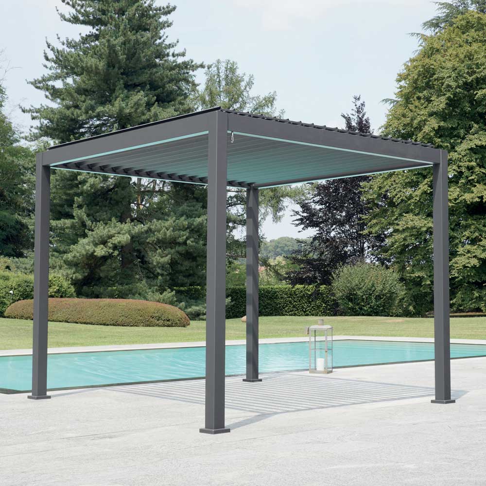 Designul modern si minimalist se potriveste perfect cu orice stil de mobilier de exterior, transformandu-ti gradina intr-o oaza de confort si stil. Perfectă pentru a găzdui cine în aer liber , întruniri de familie sau pur și simplu pentru a te bucura de un moment de relaxare sub cerul liber, această pergolă este o investiție funcțională și plăcută din punct de vedere estetic pentru casa ta.