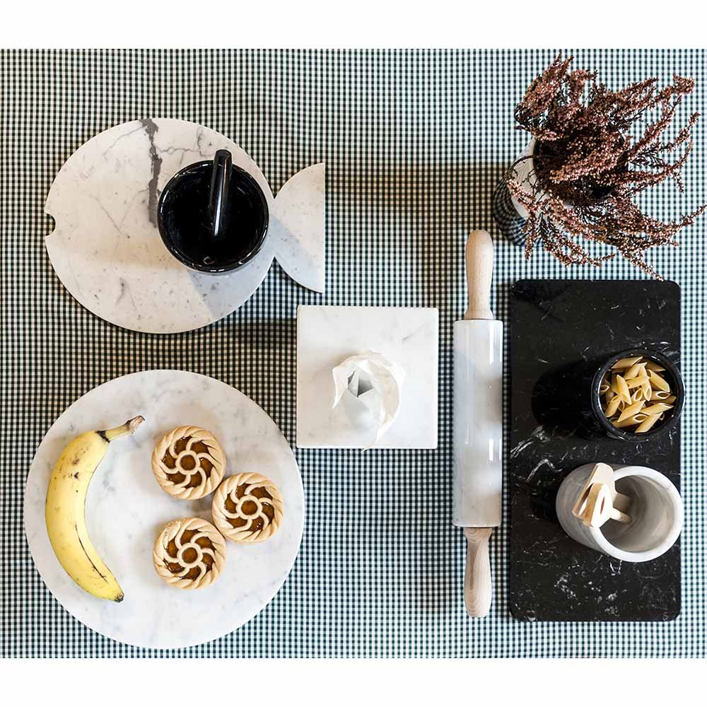 Marmura albă de Carrara folosită pentru crearea acestor produse provine din cariera Poggio Silvestre, o sursă de marmură de prima calitate clasificată încă din secolul trecut.