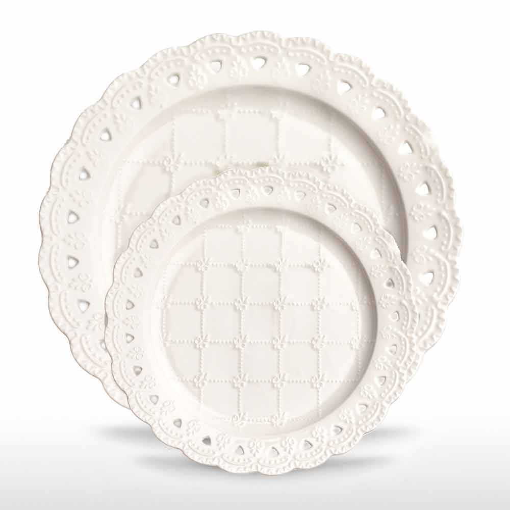 reliefuri florale și decorațiuni perforate manual, care îmbunătățesc vesela făcând masa plină de farmec și clasică.