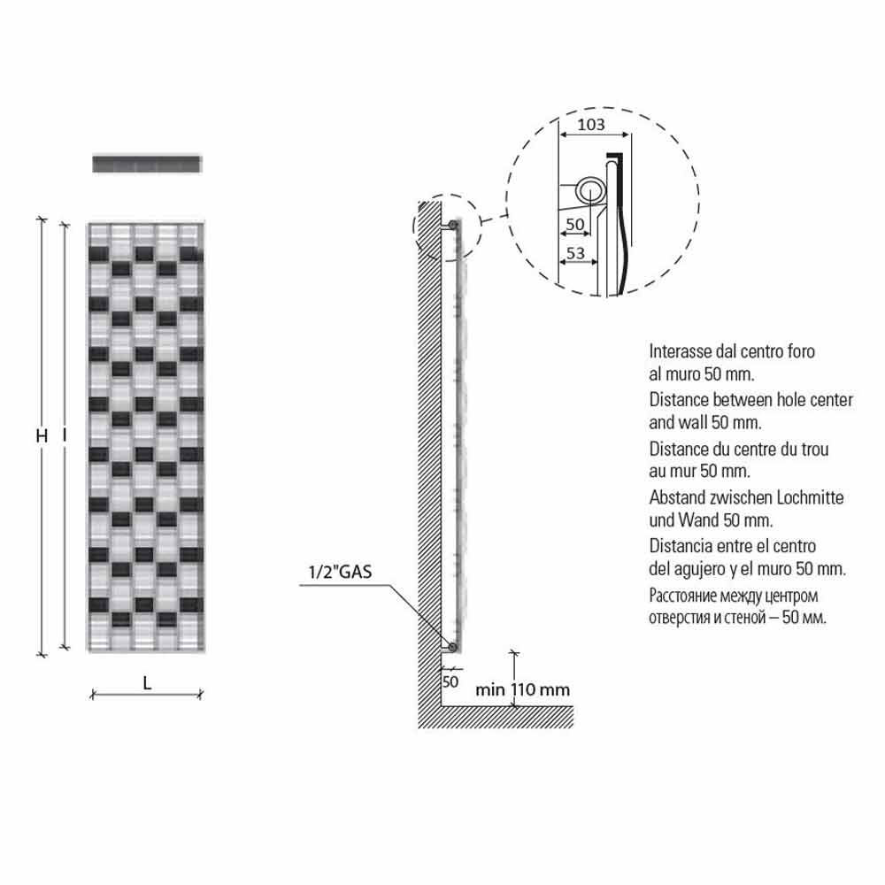 Disponibil în diferite dimensiuni cu 5 bare *:- H 1815 x L 503 x Inter. 1760 mm x Ieșire w (Δt50 *) 908; Randament w (Δt30 *) 478; Randament w (Δt26 *) 399
