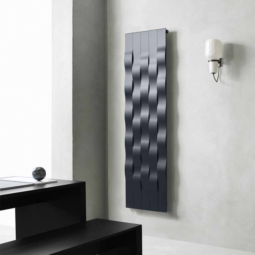 Radiator cu design electric vertical din oțel pentru camera de zi sau baie modernă și fabricată în Italia.