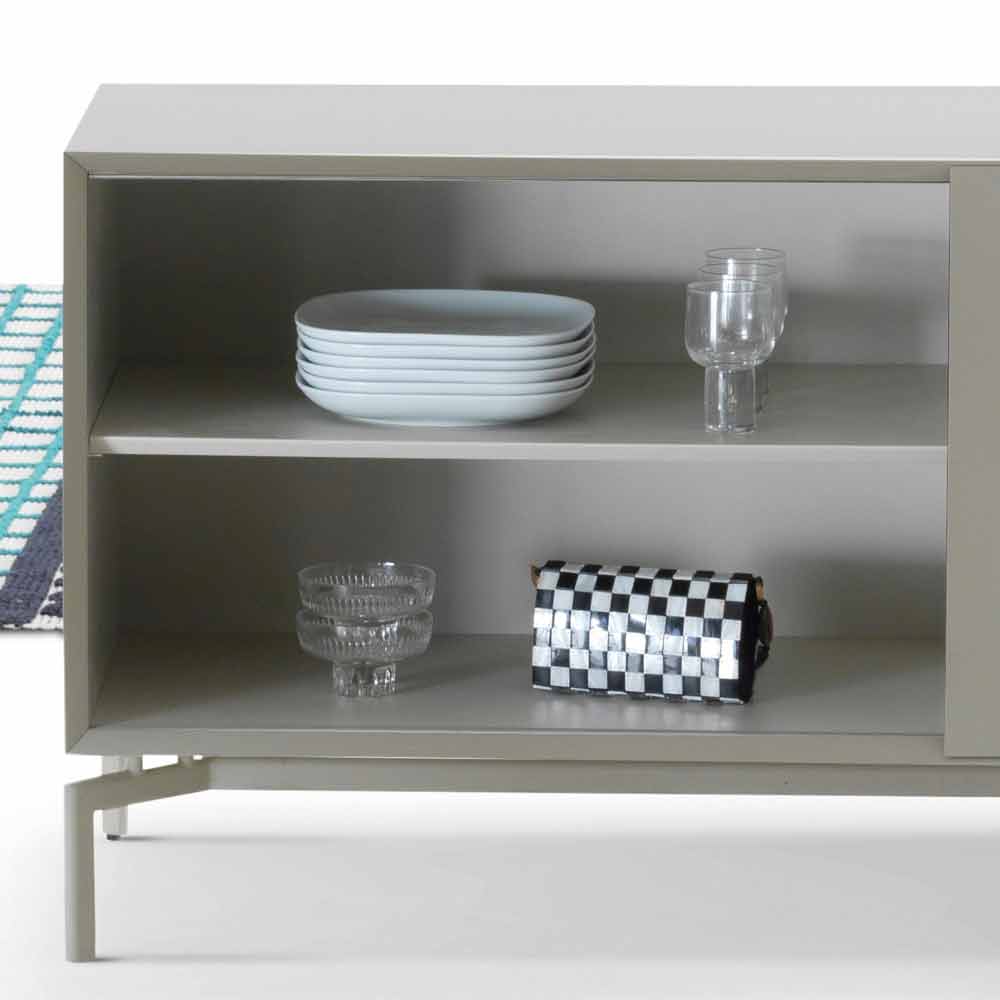 Bufetă din MDF lacuit gri porumbel mat cu compartiment deschis lacuit gri cald.