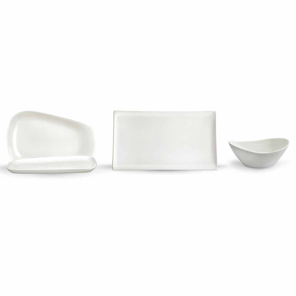 Set de servire din porțelan alb ivoriu, design de masă modern și elegant, 14 piese.