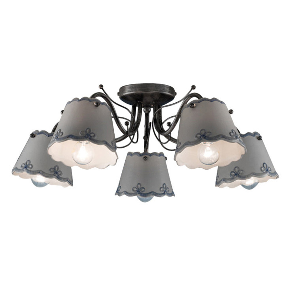 Plafoniera 3 sau 5 lumini realizata din metal si ceramica cu efect de broderie, realizata in Italia de Ferroluce.