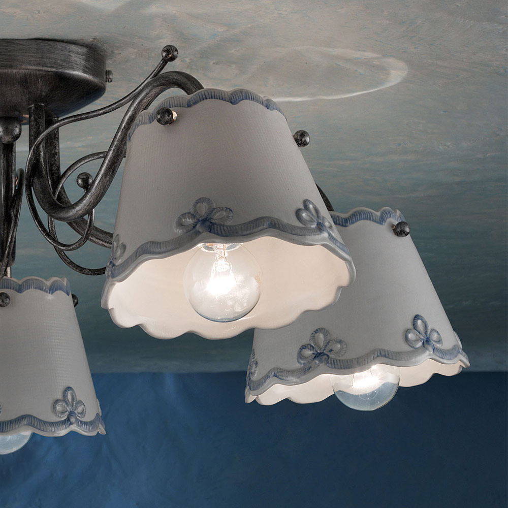 Această plafonieră cu 3 sau 5 lumini este realizată în întregime manual din metal și ceramică cu decor pictat manual, pentru a evidenția priceperea și priceperea manuală a meșterilor.