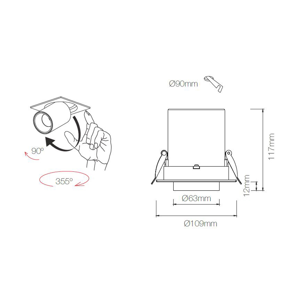 Spot cu led încastrat reglabil din aluminiu alb sau negru.