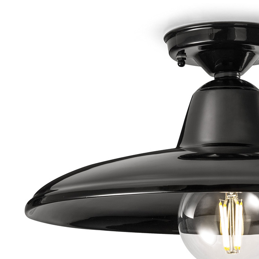 Plafoniera din ceramică și fier în stil retro, negru sau alb, realizată în Italia de Ferroluce.