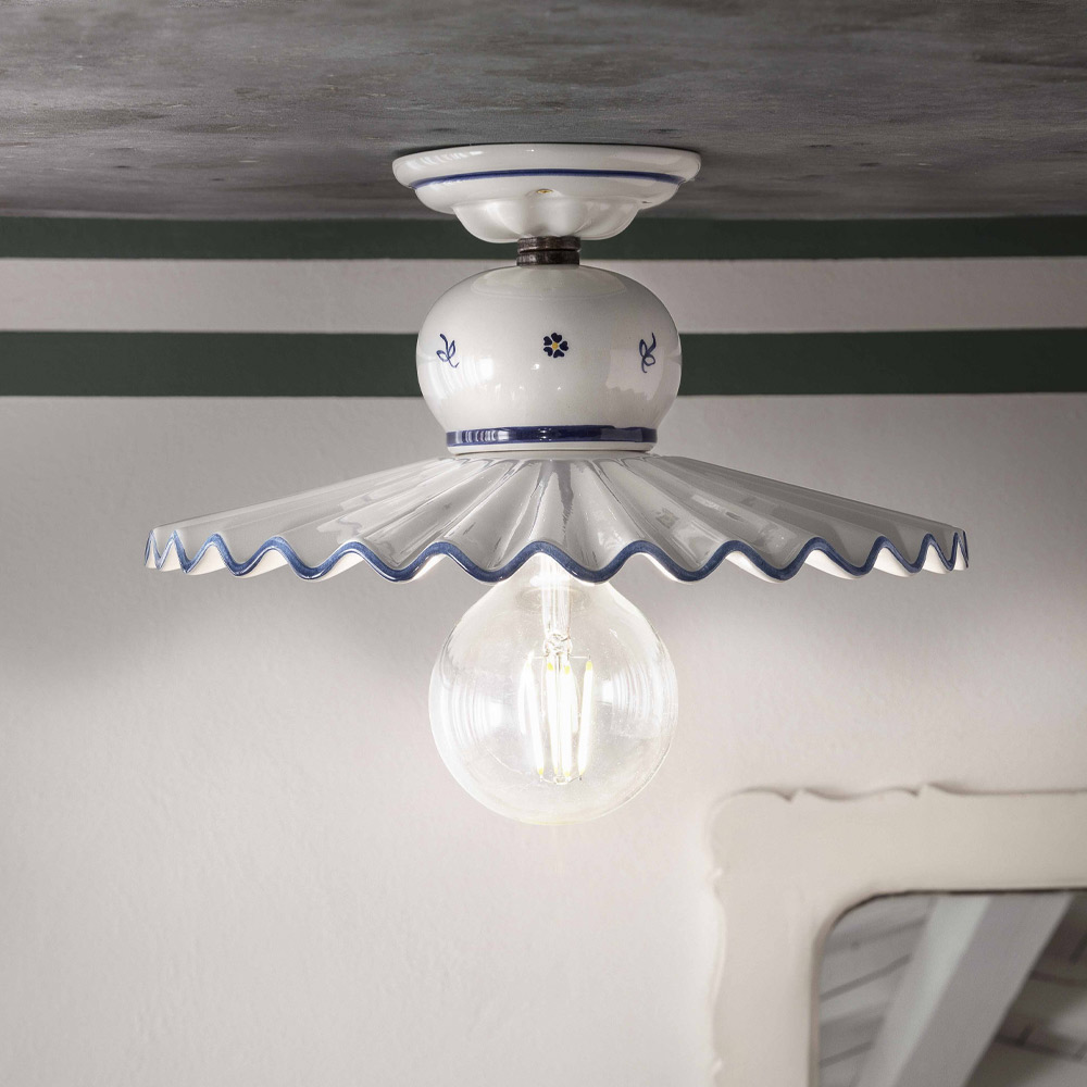 Plafoniera realizata manual din metal si ceramica pictata manual, 2 dimensiuni fabricata in Italia de Ferroluce.