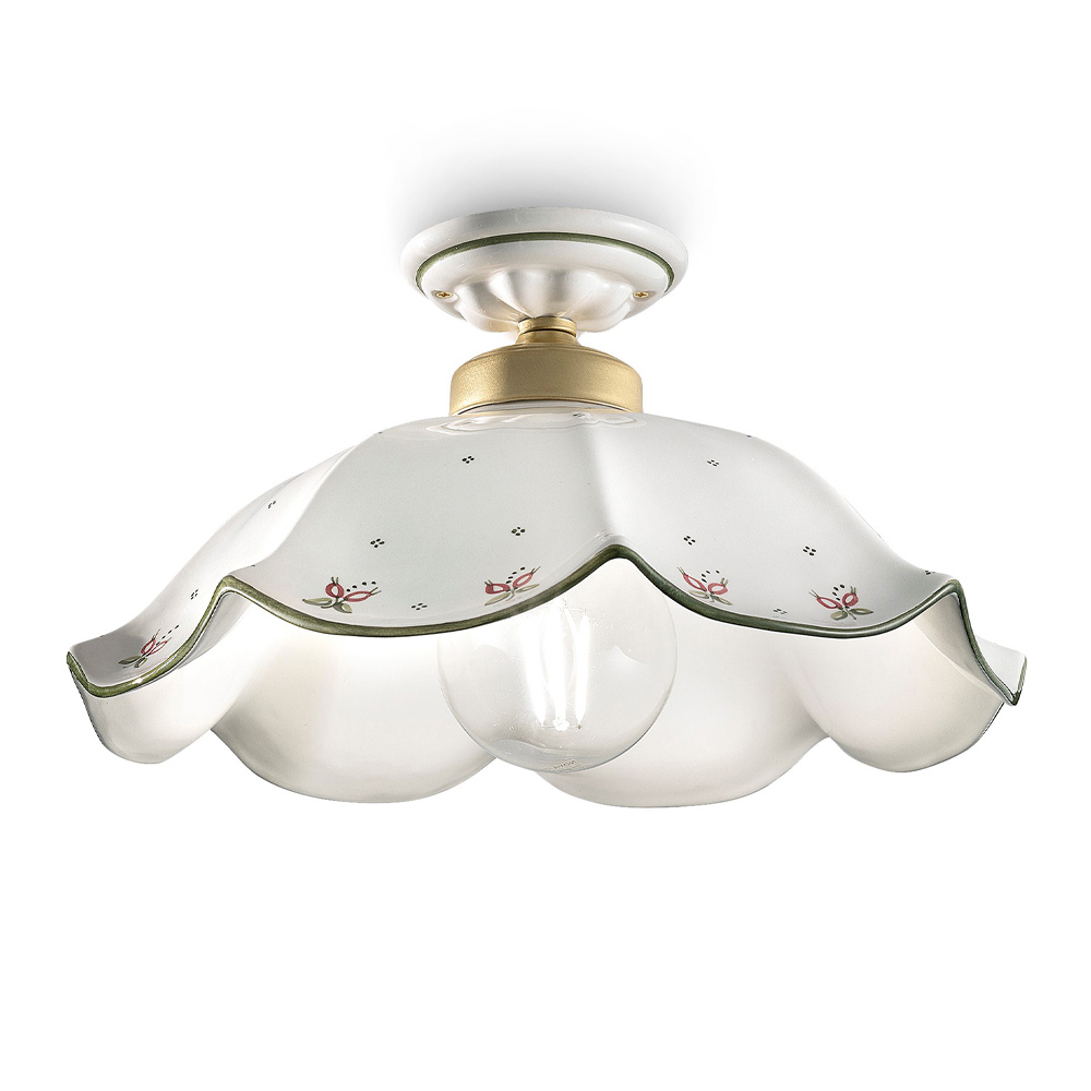 Plafoniera vintage din ceramică ondulată pictată manual, fabricată în Italia de Ferroluce.
