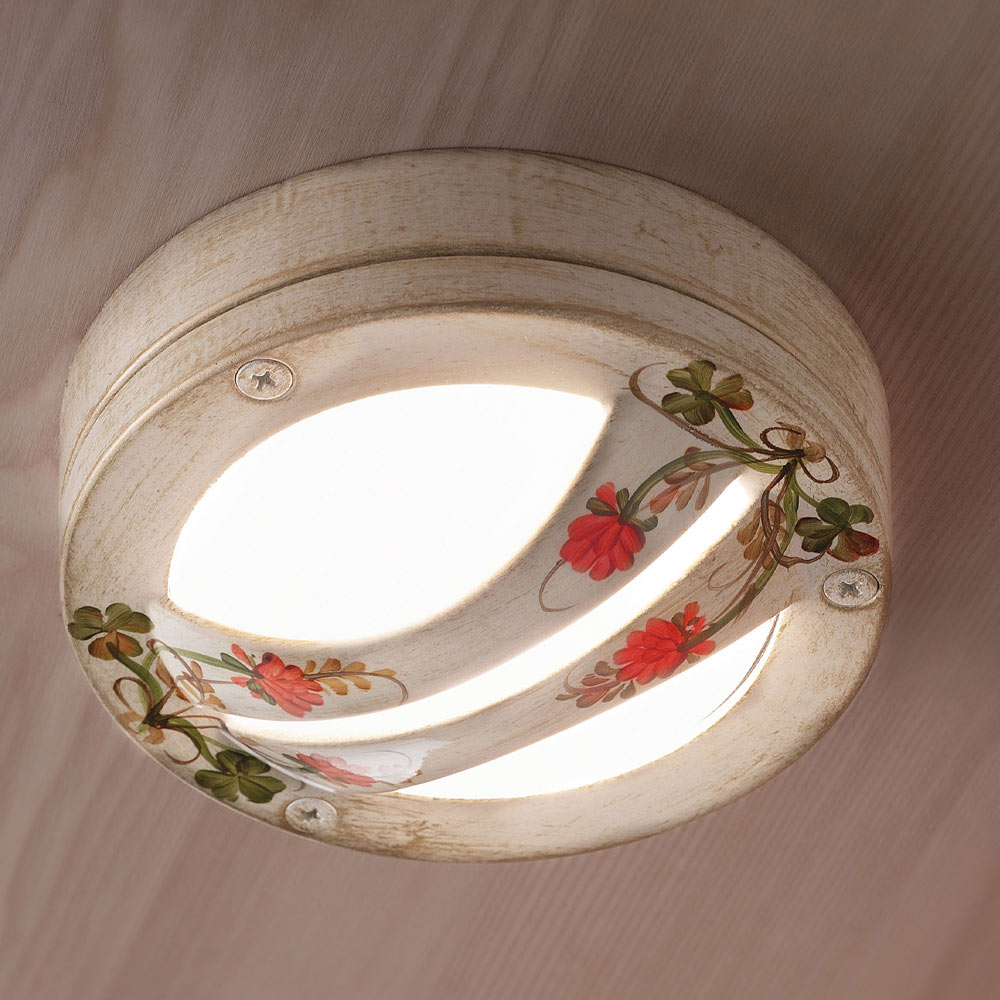Designul este caracterizat de dunga centrala dubla decorata cu flori pictate manual.
