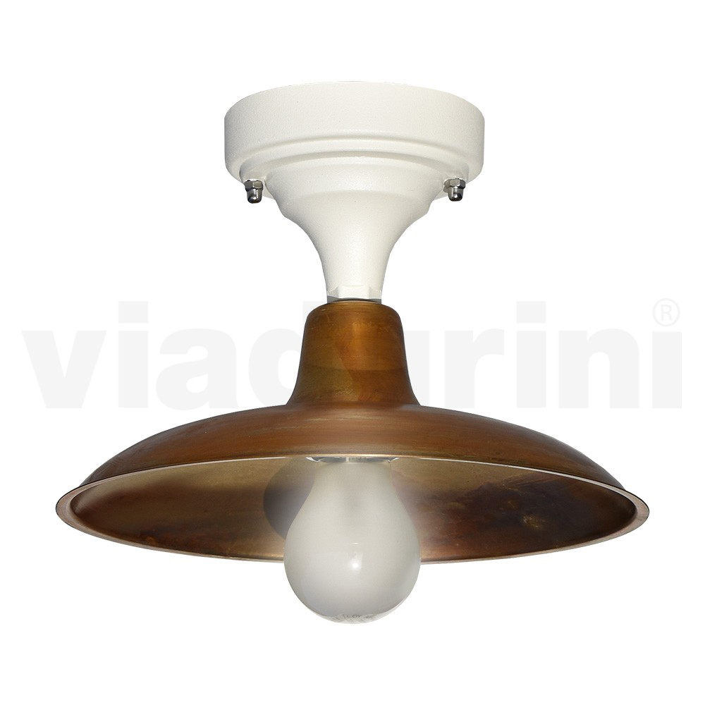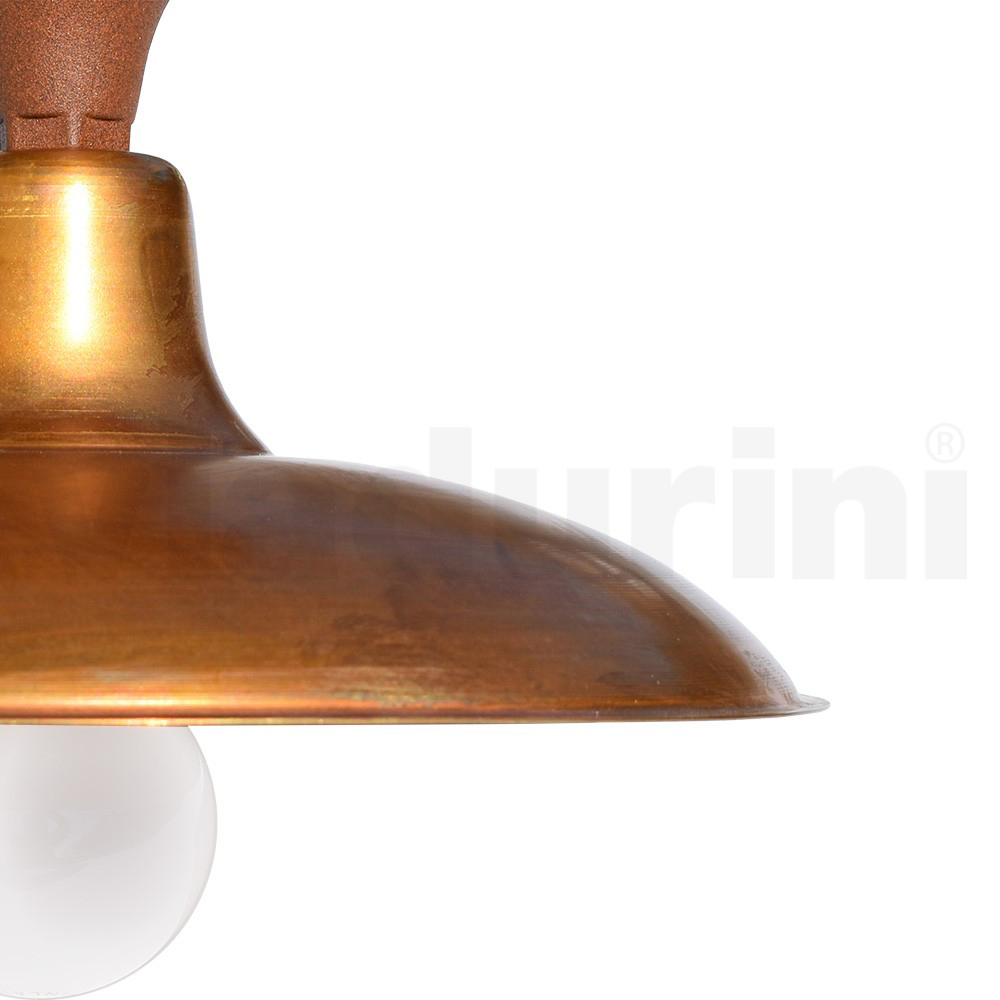 Plafoniera vintage de exterior din aluminiu cu difuzor din alama Made in Italy.
