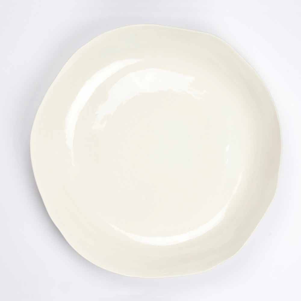 Farfurie rotundă de porțelan alb, piesă de lux unică realizată manual în Italia.