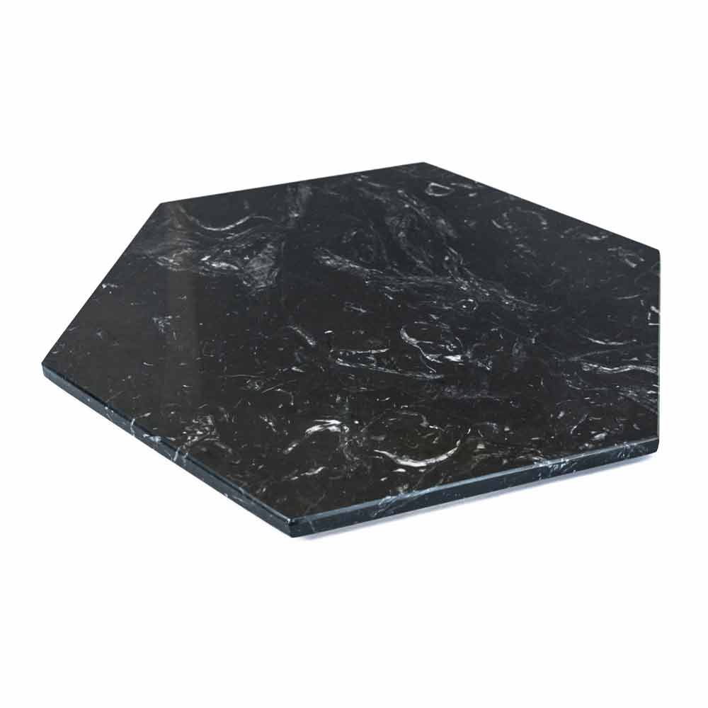 Farfurie de servire cu design hexagonal din Marquinia neagră sau marmură verde Guatemala cu dop, 2 bucăți fabricate în Italia.