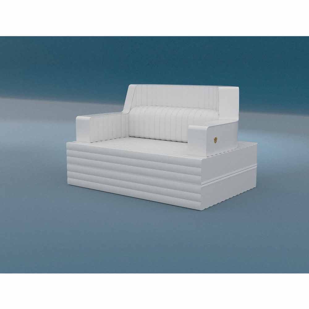 Trona Magnum este făcută în Ecopelle Eco-Friendly cu barca tratate pentru exterior finisaj alb, certificate, impermeabil la apă și ignifug și EPS, complet cu un scaun dublu, spătar, spătar și bază.