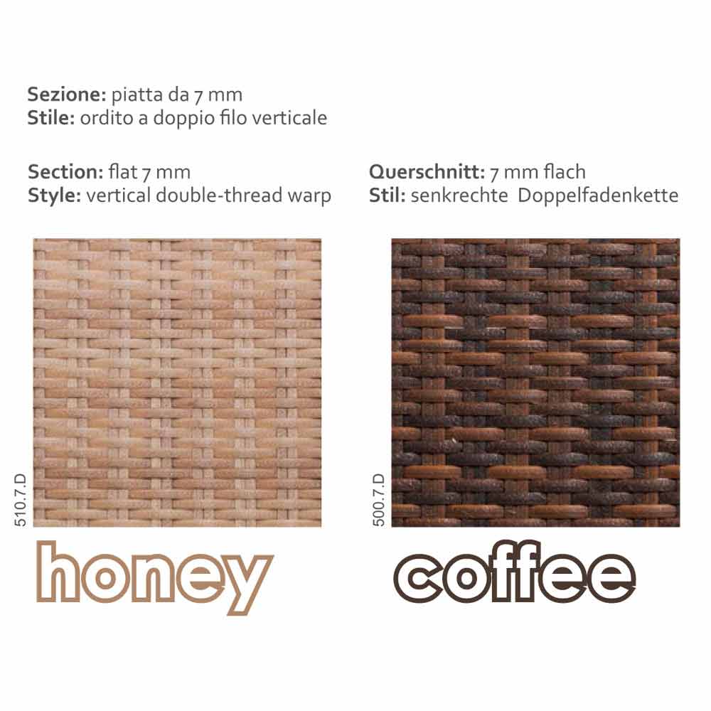 - Fibre din polietilena HDPE (fibre sintetice din fibre rattan naturale care corespunde cu o similitudine vizuală și tactilă puternică pentru fibre naturale)