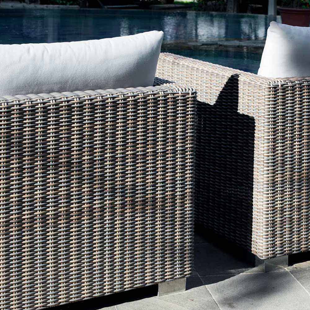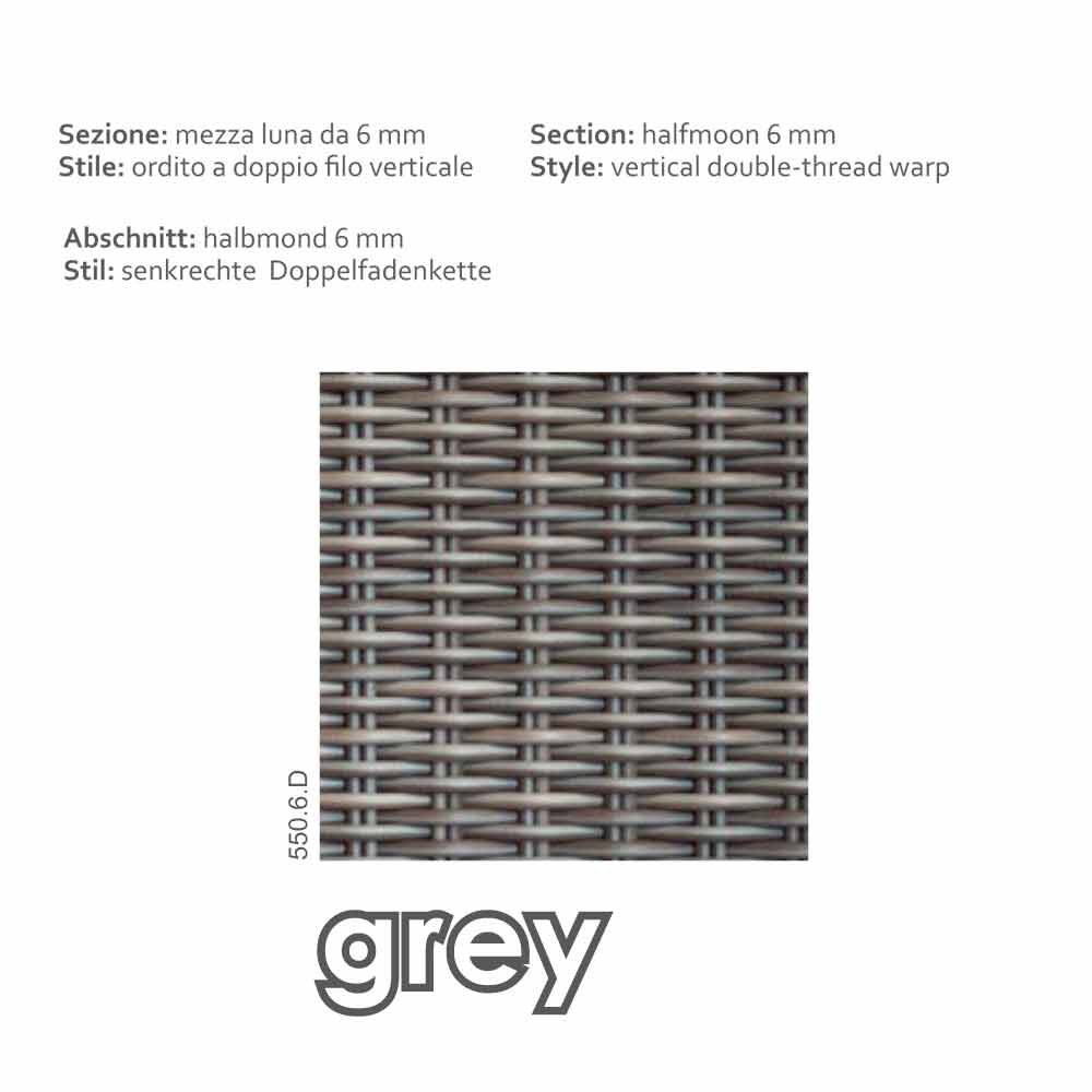 Elsa este constituită dintr - un cadru de aluminiu și o structură formată din polietilenă de înaltă calitate semiluna, în finisaj gri - taupe 6 mm, complet țesute manual.