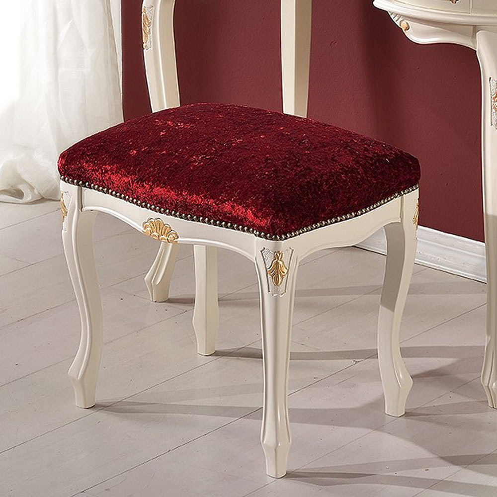 Puf în stil clasic din lemn de nuc și țesătură Made in Italy.