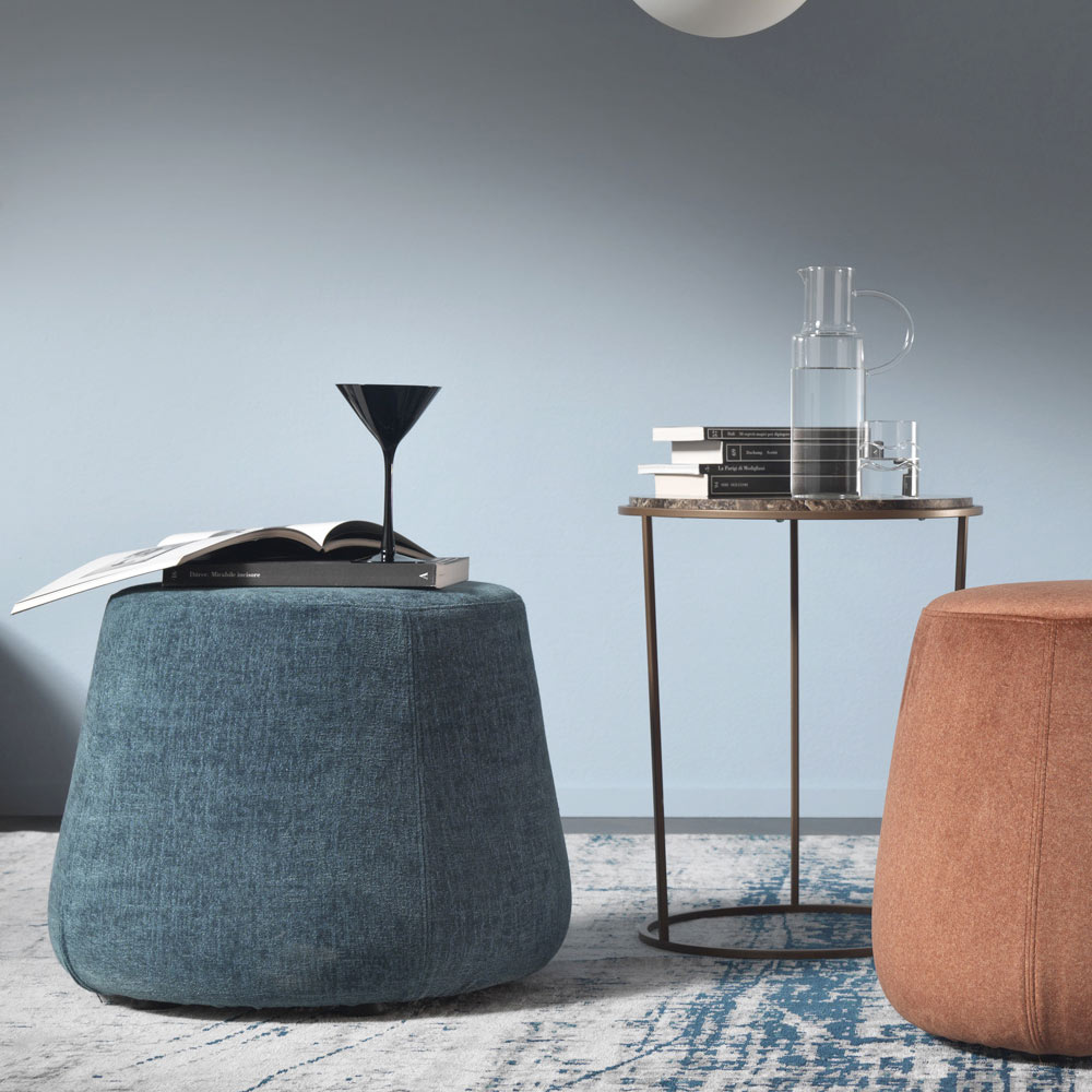 Puful cu design modern și rotund , disponibil în trei lățimi diferite, este complet acoperit cu o acoperire detașabilă moale din chenilă disponibilă în 6 finisaje.