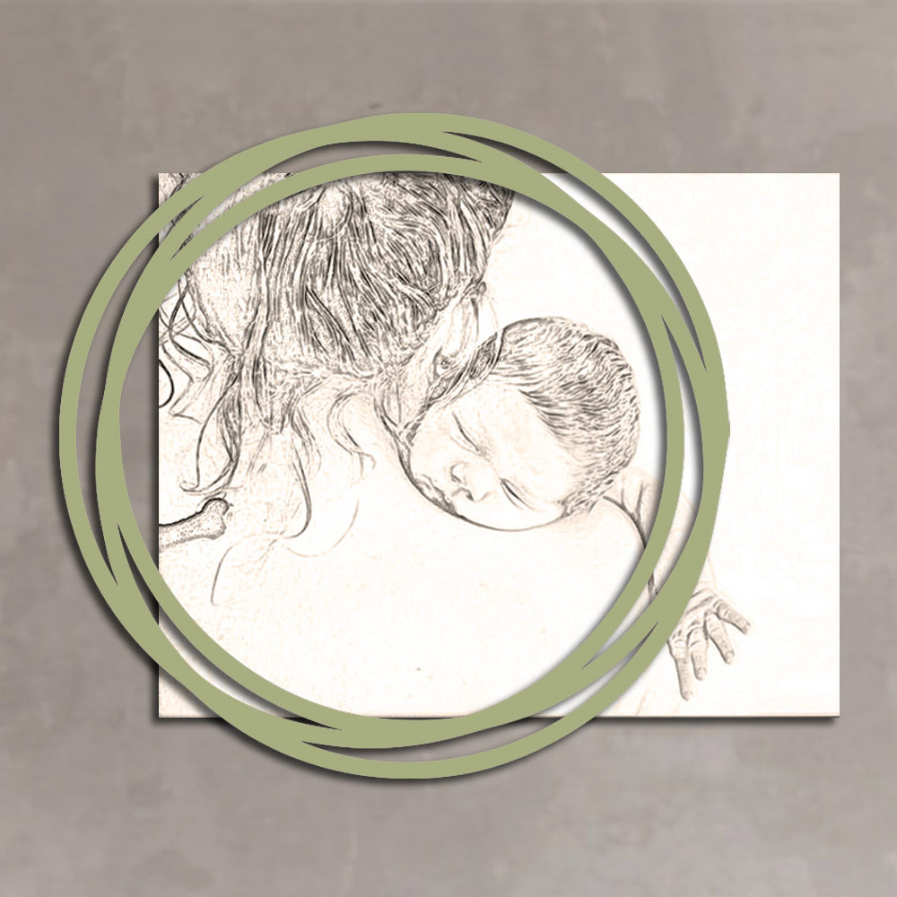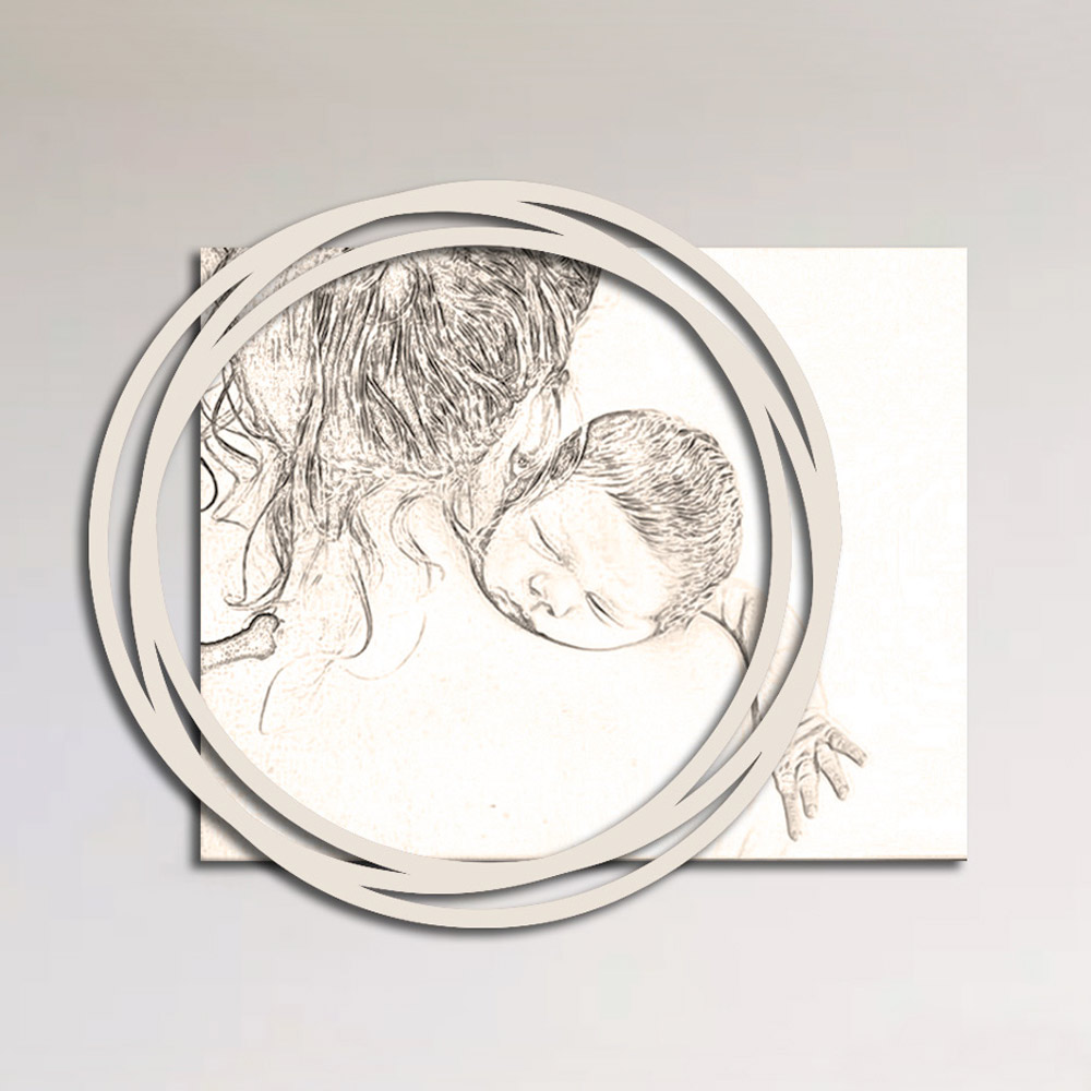 dulceața și afecțiunea îmbrățișării unei mame , evidențiate de cadrul rotund. Finisajele, lemnul ales pentru producție și tehnica de imprimare scoate în evidență toată