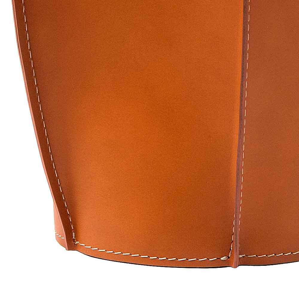 Este fabricat din piele regenerată, atât în interior cât și în exterior, și are un fund placaj, acoperit și din piele.